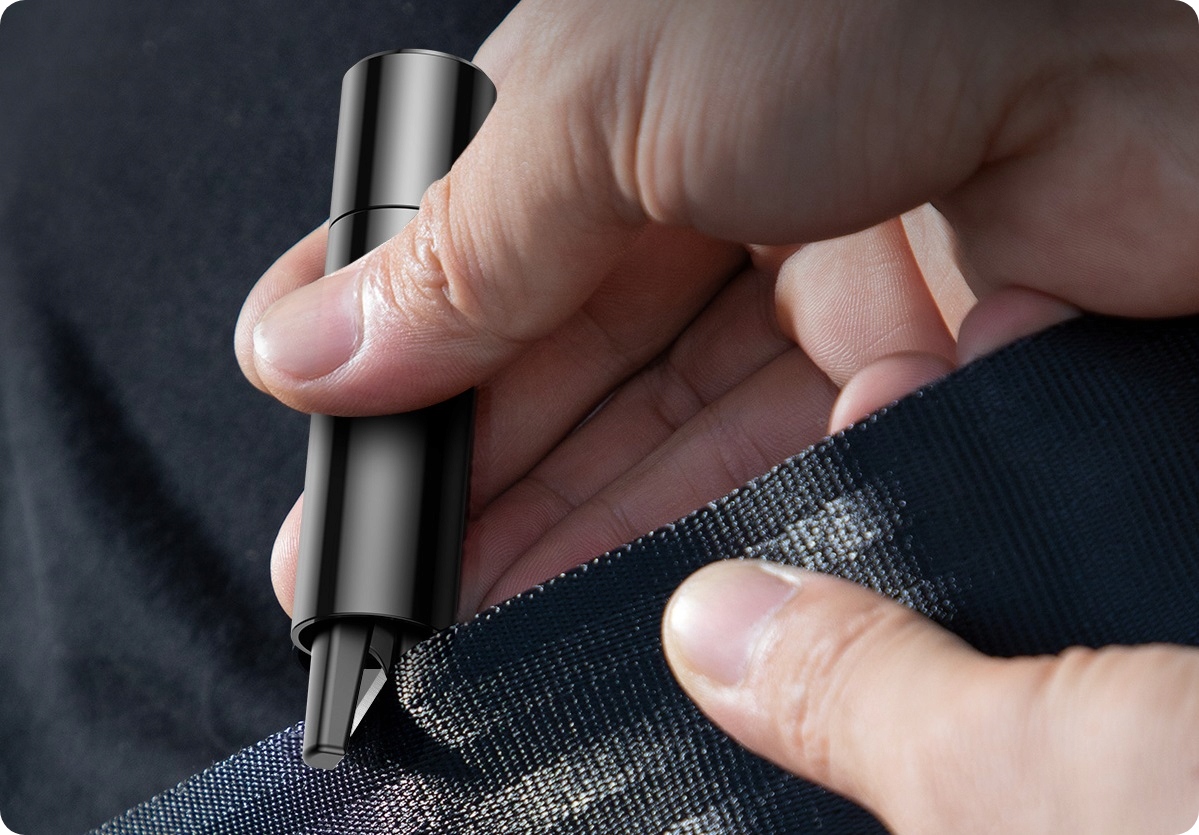 - построенный нож из нержавеющей стали: позволяет быстро и легко разрезать ремни сиденья, увеличивая шансы на безопасную эвакуацию от автомобиля.