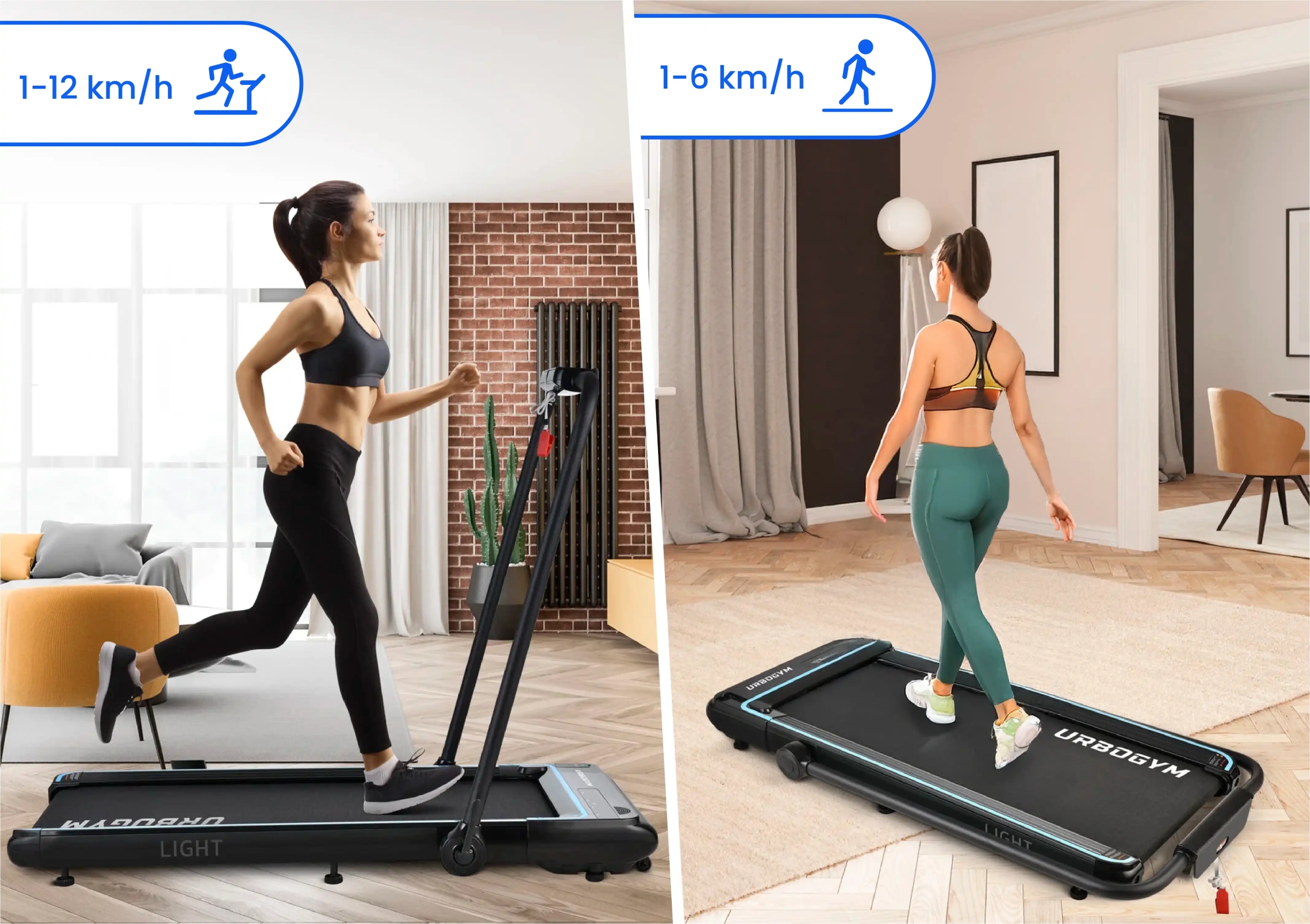 Свет - это беговая дорожка, которая адаптируется к вашим потребностям и стилю обучения. Когда поручена сложна, вы можете использовать его в качестве ходьбы , идеально подходит для спокойных прогулок со скоростью до 6 км/ч - отличный вариант для повседневного движения, улучшения кровообращения или регенерации. Когда вы хотите пойти на более интенсивные тренировки, просто разложите поручни и переключите протектор в классическом режиме беговой дорожки. Благодаря скорости до 12 км/ч вы можете насладиться бесплатным пробежком, идеально подходящим для улучшения состояния, сжигания калорий или прочности здания.