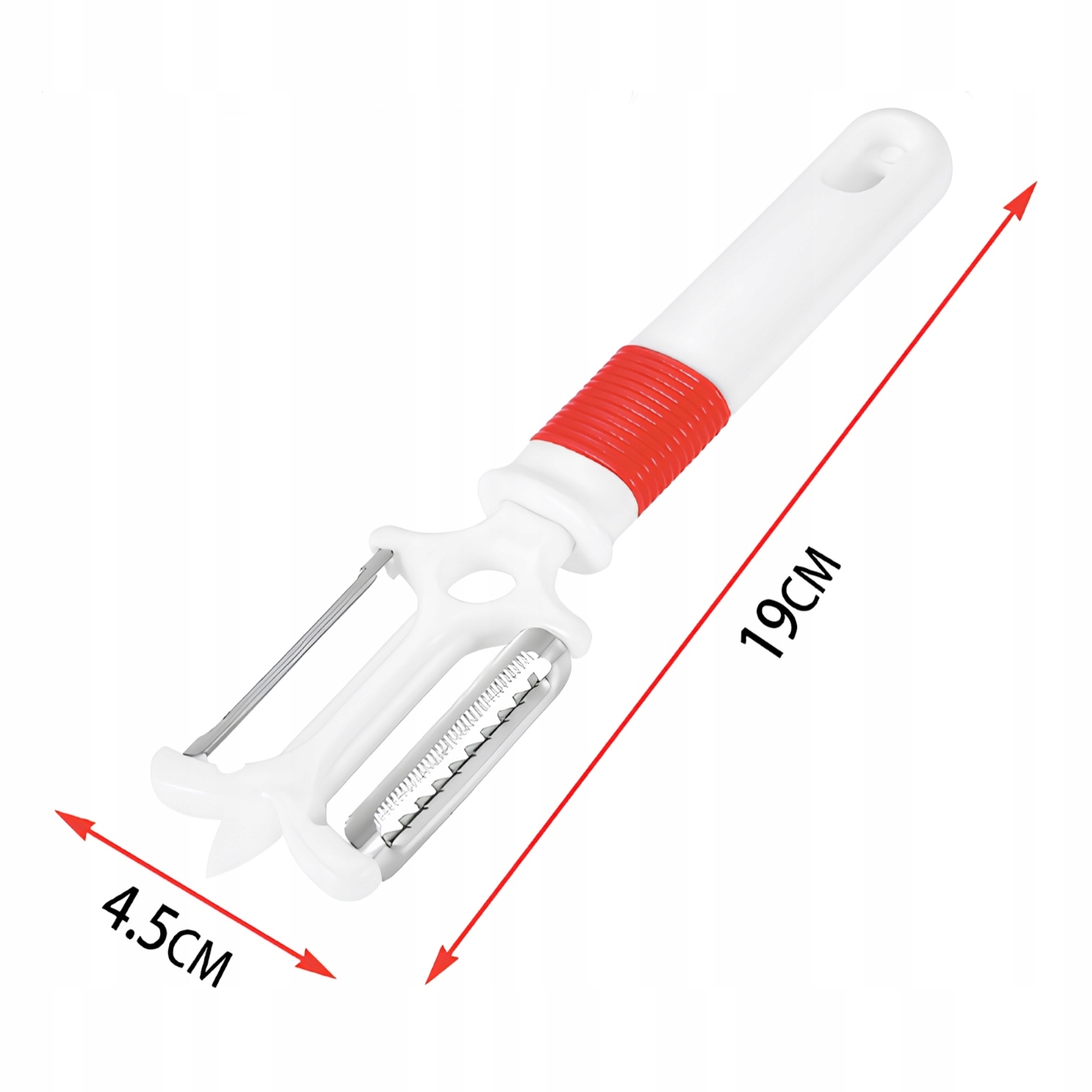 2in1 19 CM Peeler - это практический инструмент, который облегчает быстрое приготовление овощей и фруктов. Благодаря двум лезвиям в одном устройстве вы можете легко настроить функцию на тип продукта.