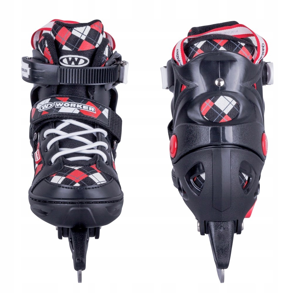 Легкая, пластиковая рама, углеродные подшипники ABEC и полиуретановые резиновые колеса обеспечивают отличный комфорт. Скиды изготовлены из высококачественной, сертифицированной стали. Практическая петля в верхней части обуви, шнурки и пряжки позволяют эффективно удалять и надевать ролики, что гарантирует стабильное вождение. Благодаря этим свойствам, Скейтс 2IN1 Работник Denel является отличным продуктом для новичков -каетков и фигуристов. Замок и липучка