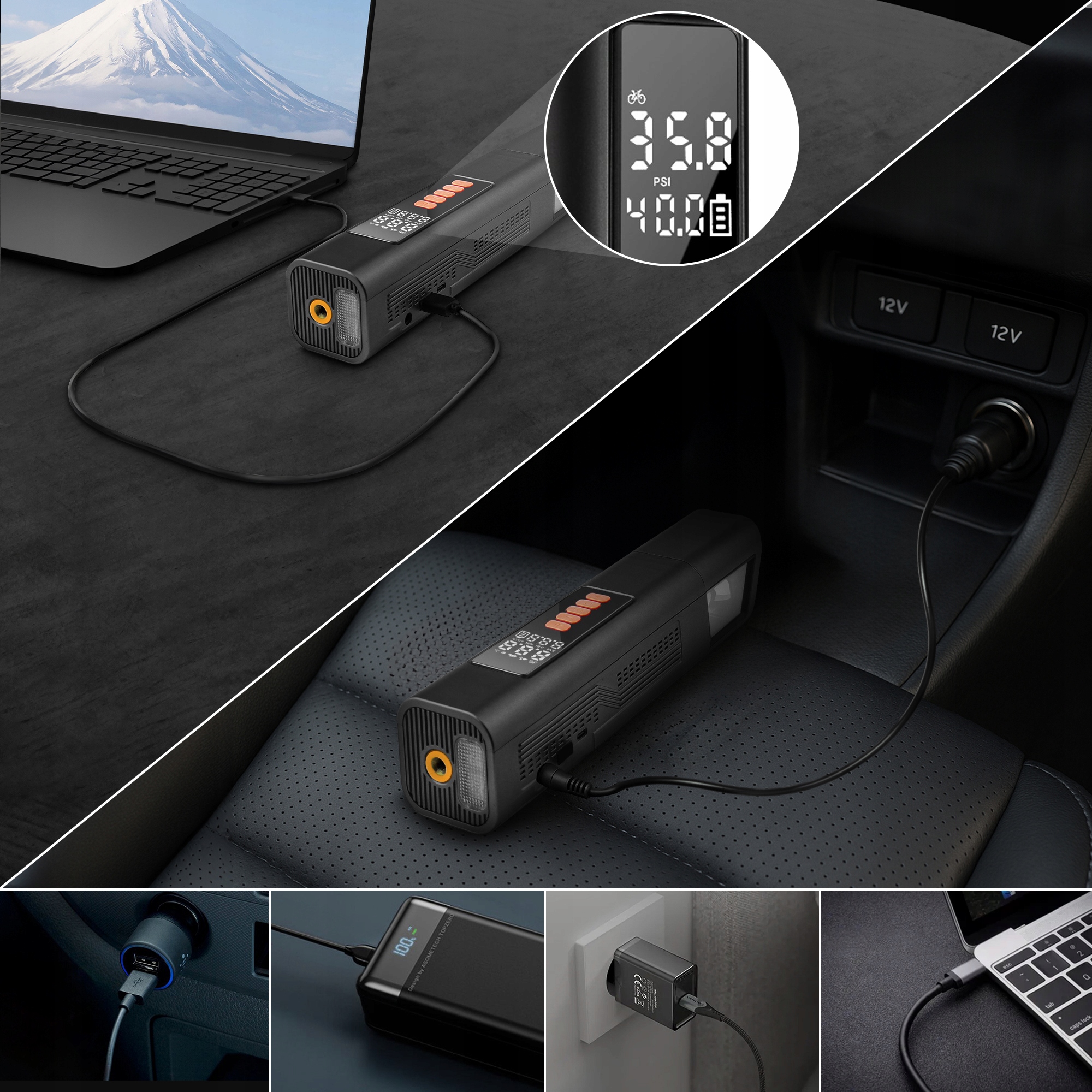 Устройство также будет работать вне автомобиля - семьи с детьми будут использовать их для накачки бассейнов, игрушек и активных людей позаботиться о спортивном оборудовании, от шаров до матрасов для упражнений. Кроме того, созданный фонарик с функцией s.o.s обеспечит видимость на аварийной полосе. Ручной пылесос также имеет различные советы по вакууме и перекачке, что делает его практическим и универсальным инструментом.