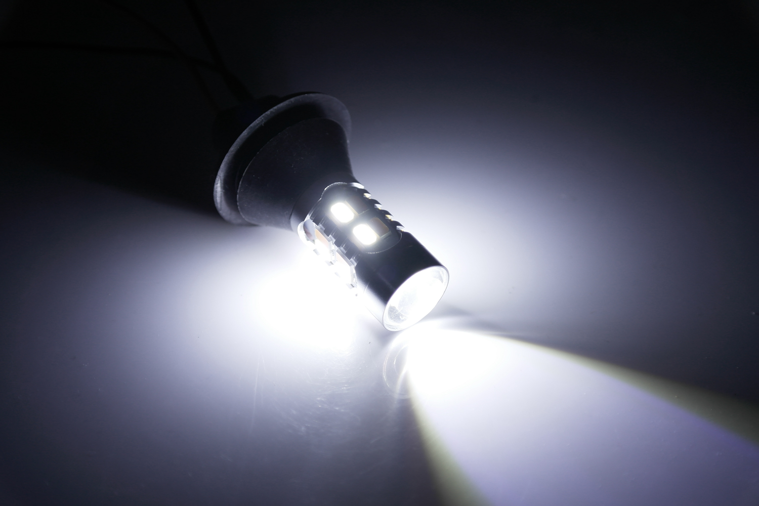 Значение силы света светодиодной лампы 2в1 2х20 SMD 5730, характеризующейся низким энергопотреблением и двойной функцией, соответствует величине света исходит от обычной лампочки P21W. Тем не менее, благодаря использованию множества светодиодов с большой площадью поверхности и холодным белым цветом света, света становится оптически больше. Приобретение и установка комплекта светодиодов 2в1 2х20 SMD 5730 будет способствовать: