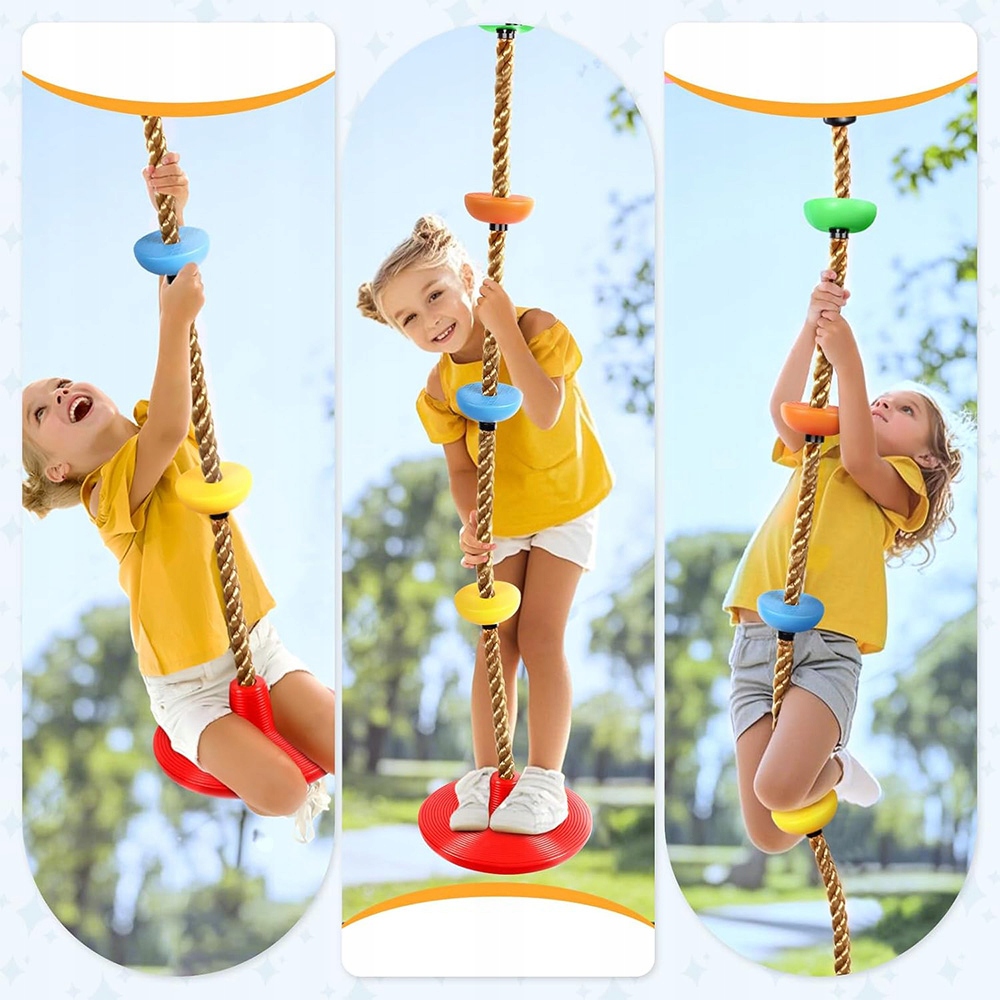 Подвижность детей не имеет ограничений, и мы должны дать им достаточно возможностей использовать эту энергию. Эти суперкачели позволяют раскачиваться как в положении сидя, так и стоя, а веревка для лазания с 4 разноцветными дисками непременно облегчит вам задачу и доставит массу развлечений и удовольствия.