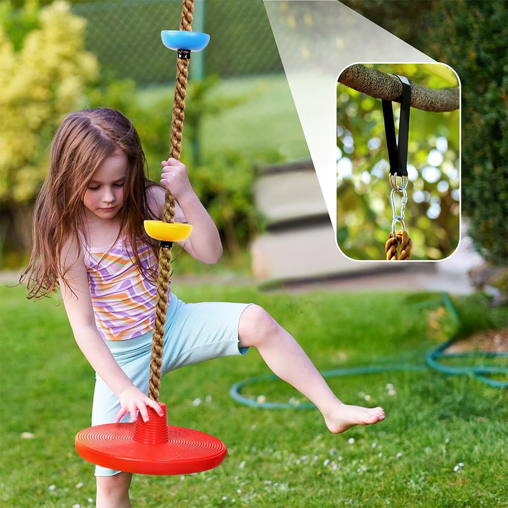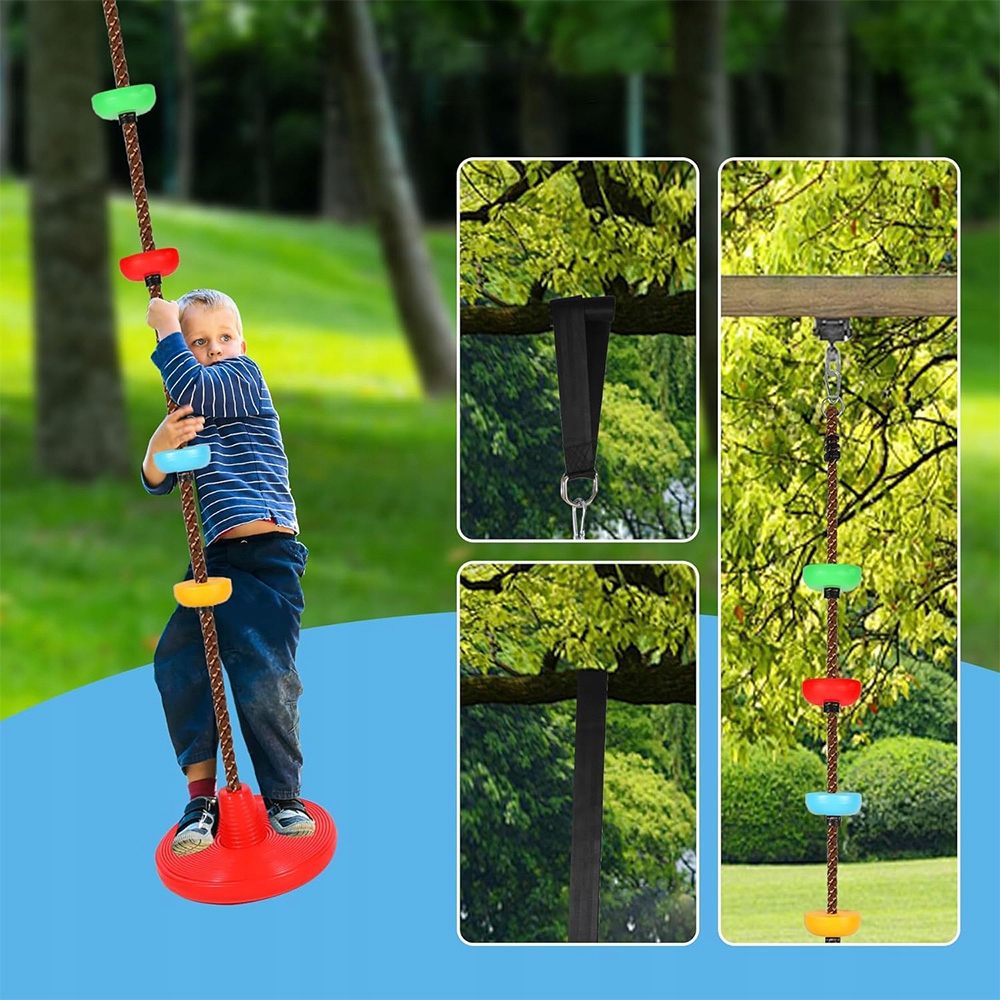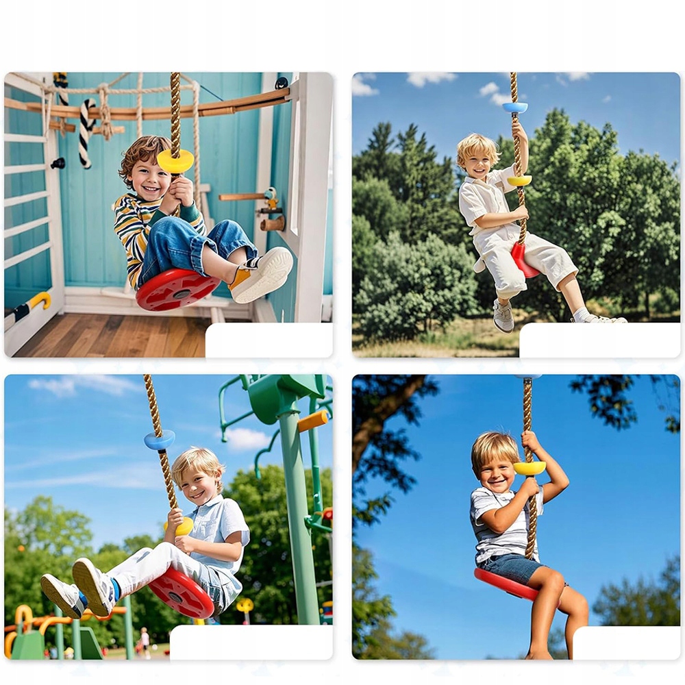 Лазанье по диску требует усилий многих групп мышц, руки должны нести вес тела, ноги должны эффективно подтягиваться вверх и, самое главное, мышцы живота, отвечающие за подтягивание вверх. Сиденье изготовлено из высокопрочных и легких материалов, что обеспечивает полную безопасность использования качелей. Это необычное сиденье очень безопасно, поскольку ребенок, сидящий на нем, имеет между ног веревку и должен держать ее обеими руками. Это отличный способ совместить безопасную игру и физическую активность, улучшить физическую форму детей и весело провести время на свежем воздухе.