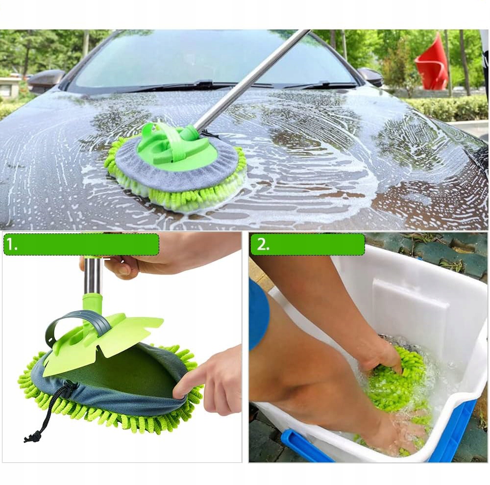 - с ручкой, удобной ручкой, скрытой и регулируемой. Очистка швабры - это ремень. Ручка может быть легко удалена, а головка используется в качестве чистящей перчатки для очистки внутренней части автомобиля.