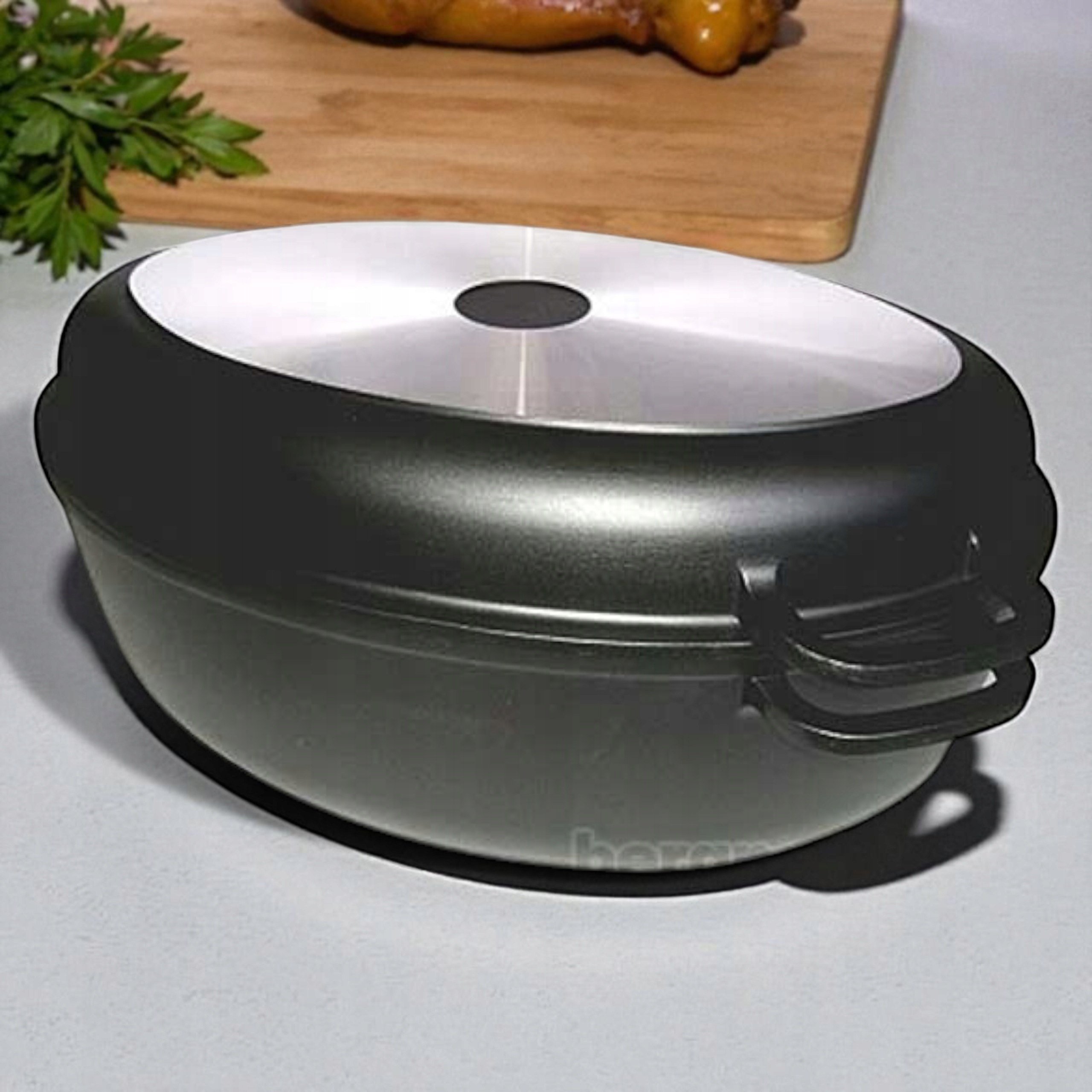 Инновационная ручка аромата покрытия позволяет точно добавить воду, нефть или специи во время выпечки или тушеного мяса - без необходимости удалить крышку.