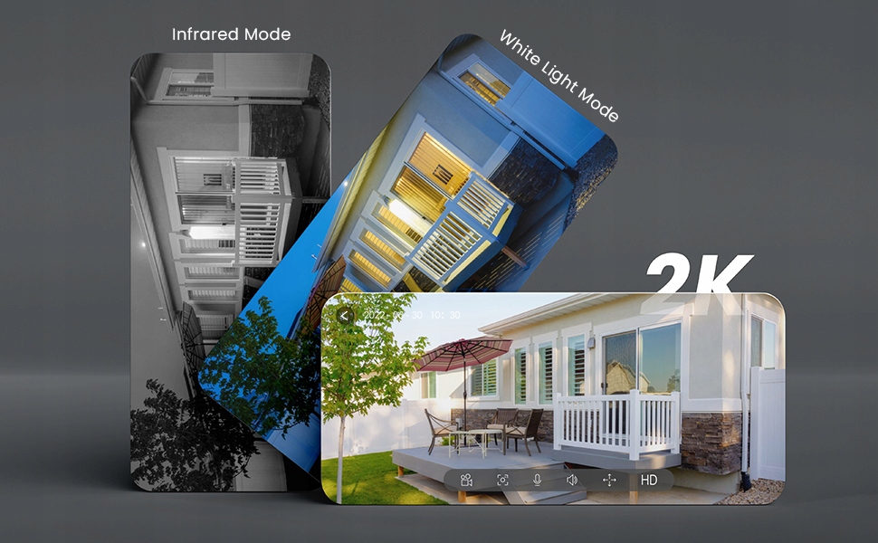 Камера безопасности ieGeek имеет встроенные 2 белых светодиода и 4 инфракрасных светодиода, которые обеспечивают кристально чистое ночное видение 2K или черно-белое ночное видение.