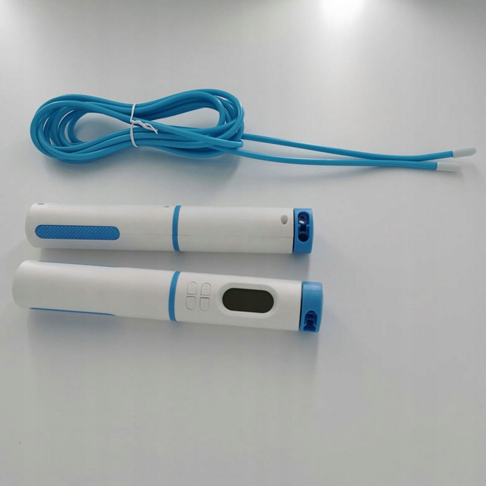 На экране с подсветкой отображается секундомер, вес, калории и количество кругов, что позволяет отслеживать прогресс тренировки.