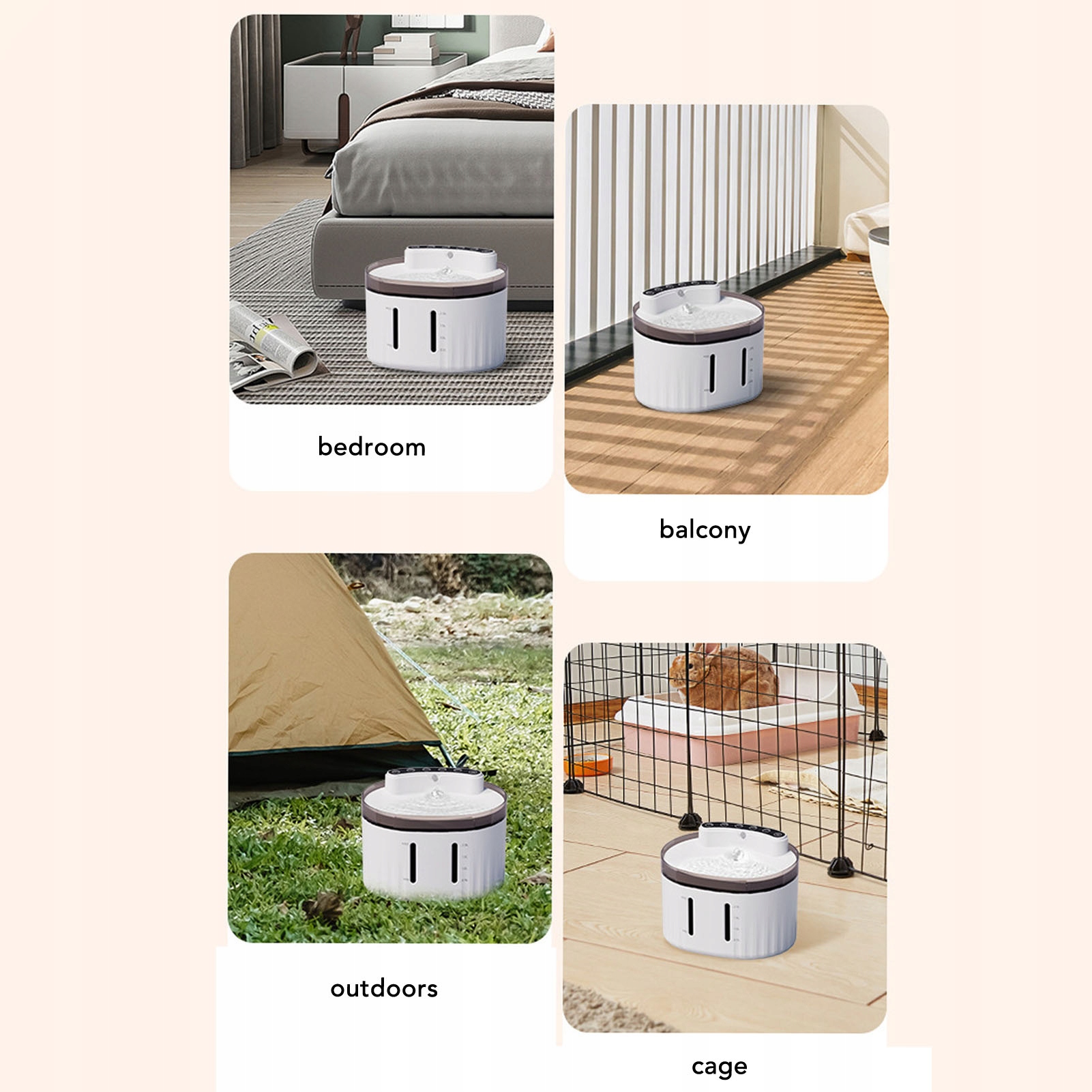 4. Варианты универсального размещения: этот фонтан беспроводной воды для домашних животных позволяет настраивать его в любом месте, без ограничений на мощность, что облегчает доступ к воде, куда бы они ни шел.