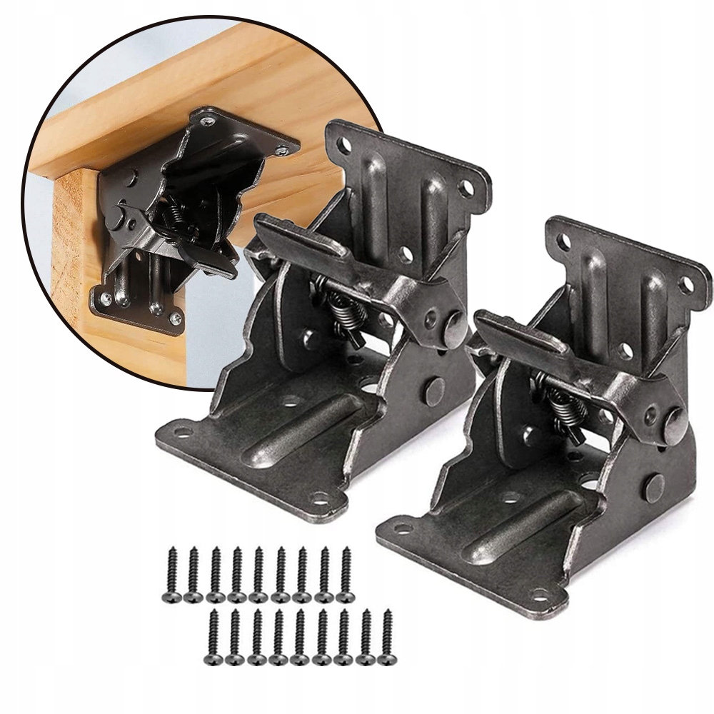 2PAK SKŁADANYCH ZAWIASÓW SAMOBLOKUJĄCYCH ZE ŚRUBAMI, DO NÓG ŁÓŻKA STOŁOWEGO