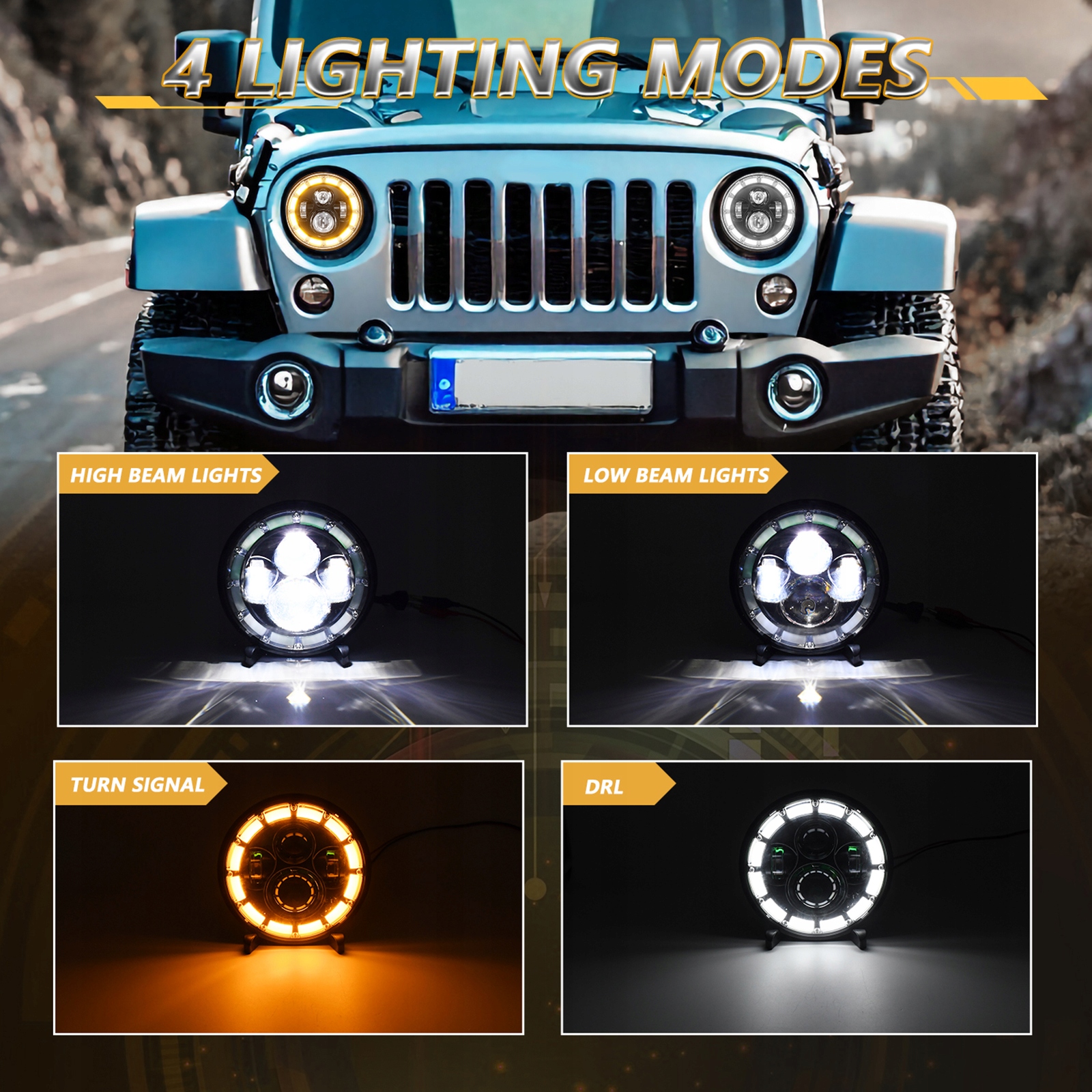 4. Применение по ширине: не ограничивается использованием мотоциклов, но также заменяет Jeep Wrangler JK LJ CJ TJ и так далее. Он совместим со всеми автомобилями с 7-дюймовыми круглыми фарами.