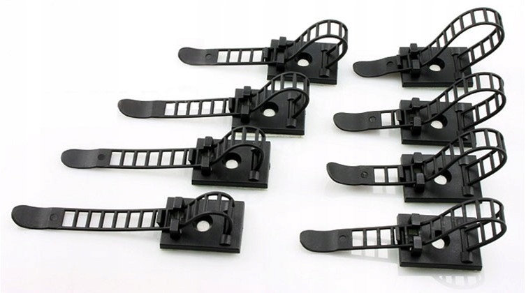 Закрепите кабели с помощью этих самоклеящихся держателей, вы можете легко устанавливать и снимать кабели. Резинка регулирует количество проводов в держателе.