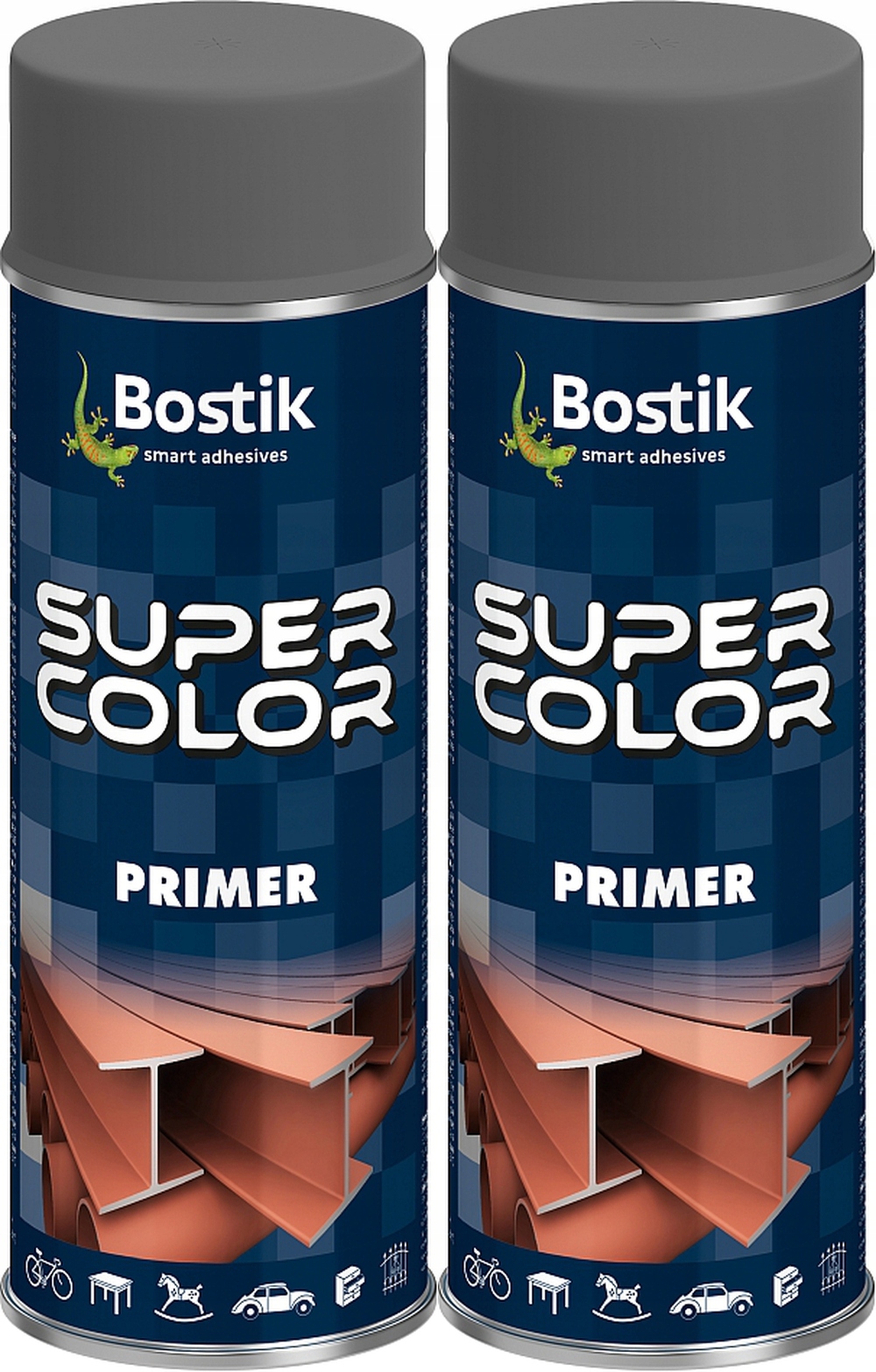 2шт BOSTIK SUPER COLOR PRIMER PRIMER PRIMER 400мл Серый АЭРОЗОЛЬНЫЙ СПРЕЙ
