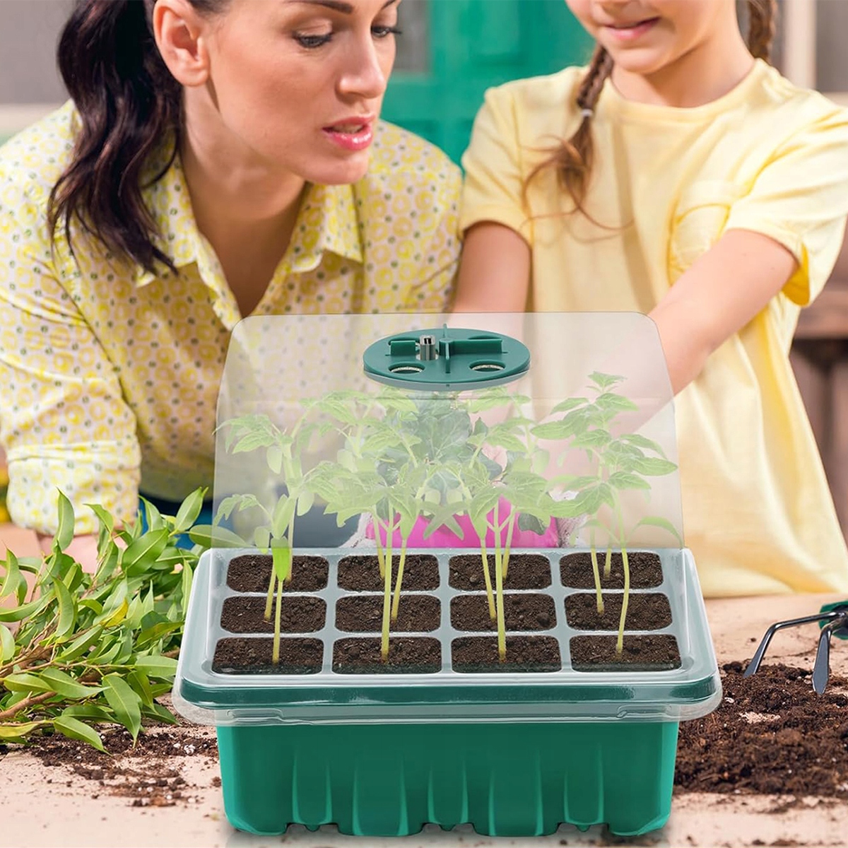 ⭐Лотки для рассады для теплицы, мини-набор для рассады из 2 частей с поднятыми крышками, стартовый набор для рассады с полным спектром света, лотки для рассады для теплицы⭐