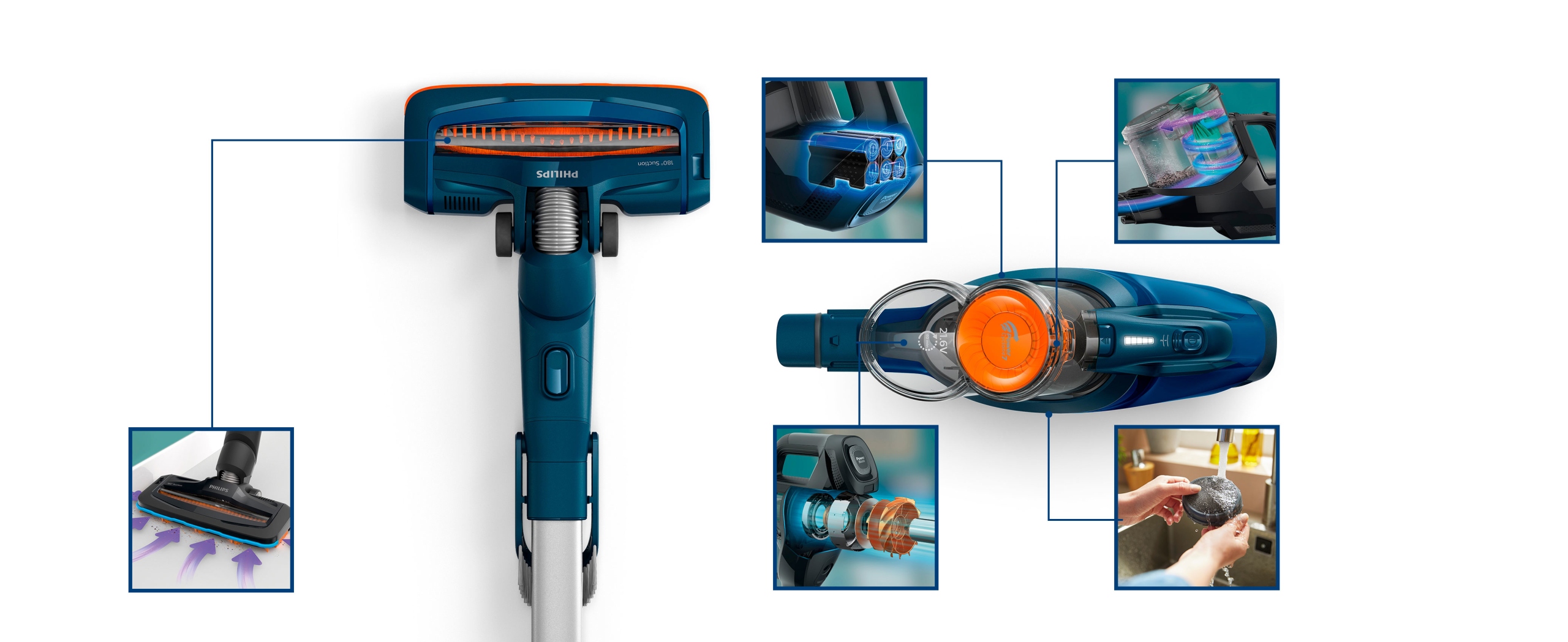 Двигатель PowerBlade был разработан для обеспечения высокой скорость, эффективная работа и точный сбор грязи на уровне крышки.