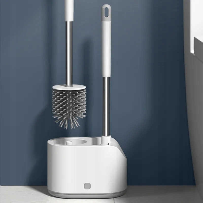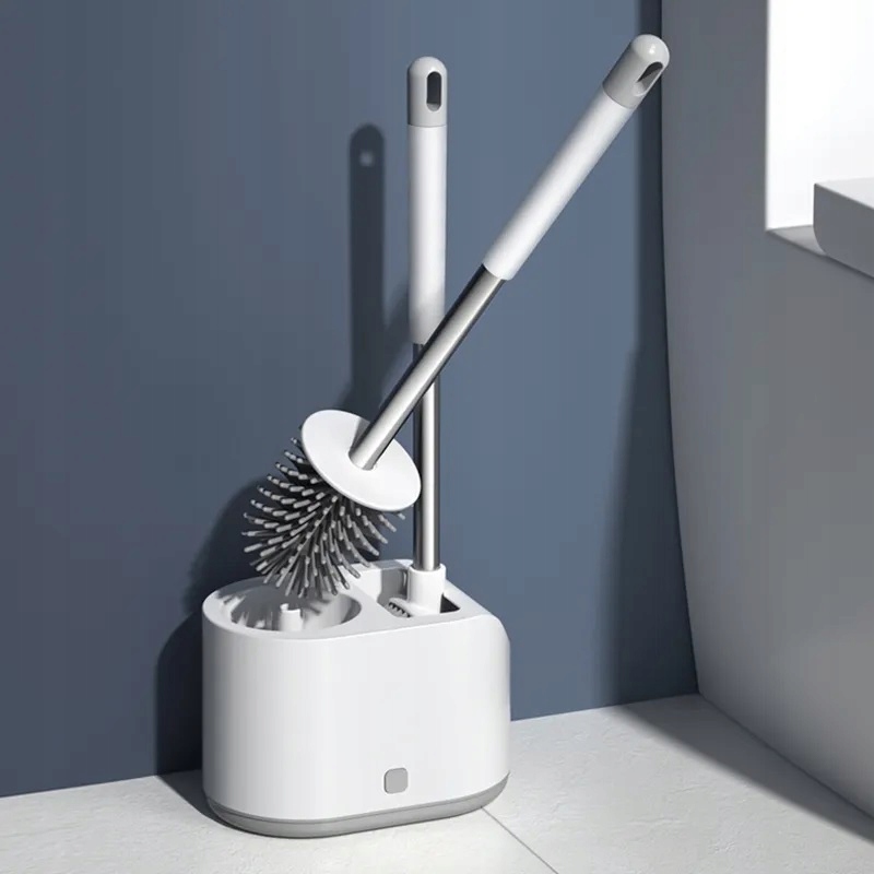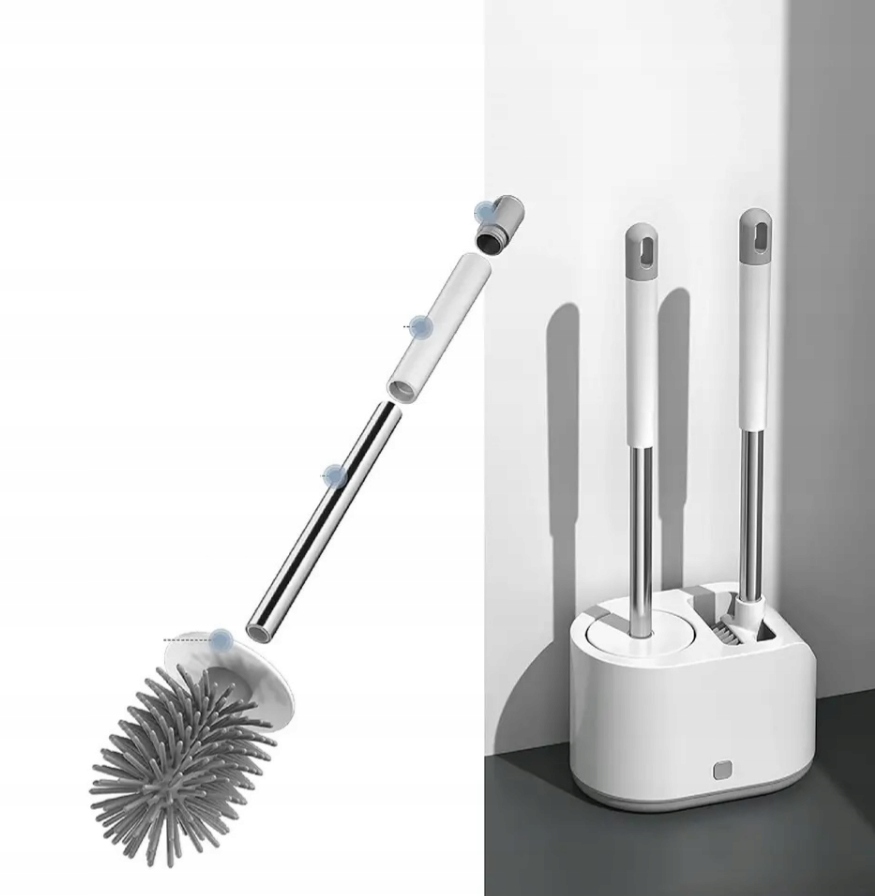 Усовершенствованный набор для чистки унитаза стильного и современного серого цвета с вентилируемым контейнером для щетки. В комплект входят два разных типа чистящих щеток, в том числе мягкая силиконовая щетка для унитаза с мягкой силиконовой насадкой и щетки для чистки душа с улучшенной густой щетиной, которые облегчают уборку ванной комнаты и туалета.
