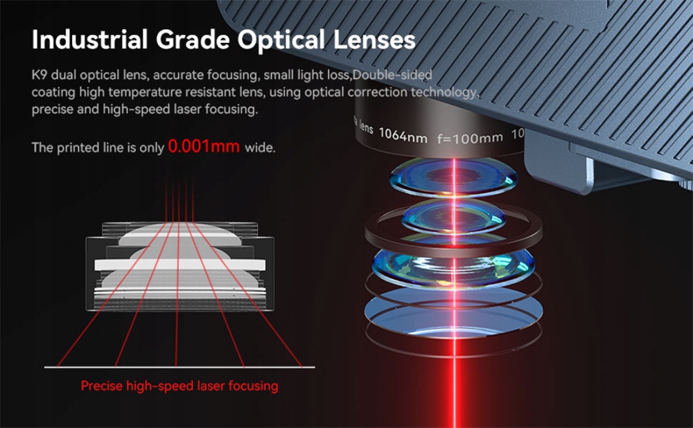 Использует функцию промышленного гальванометра, скорость маркировки лазерного гравера ATOMSTACK M4 увеличивается до 12000 мм/с, что в 5 раз быстрее, чем у машины для маркировки синим светом. Благодаря улучшенной технологии точечного сжатия минимальный отмеченный показатель составляет около 0,06 мм*0,15 мм (проверено с фокусировочной пленкой). Сверхдлинный и ультратонкий инфракрасный лазер диаметром 0,01–0,02 мм идеально отображает высокие пиксели на уровне 4K.