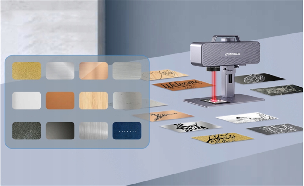 Гравировальный станок ATOMSTACK M4 может гравировать простые металлы и сплавы, редкие металлы и сплавы, оксиды металлов, наносить поверхностную обработку, материал ABS, чернила, эпоксидную смолу, кожу, дерево (лакированное), керамику (лакированное), камень и т. д. Идеально подходит для людей, занимающихся гравировкой, и для людей, которые любят играть с гравировкой.