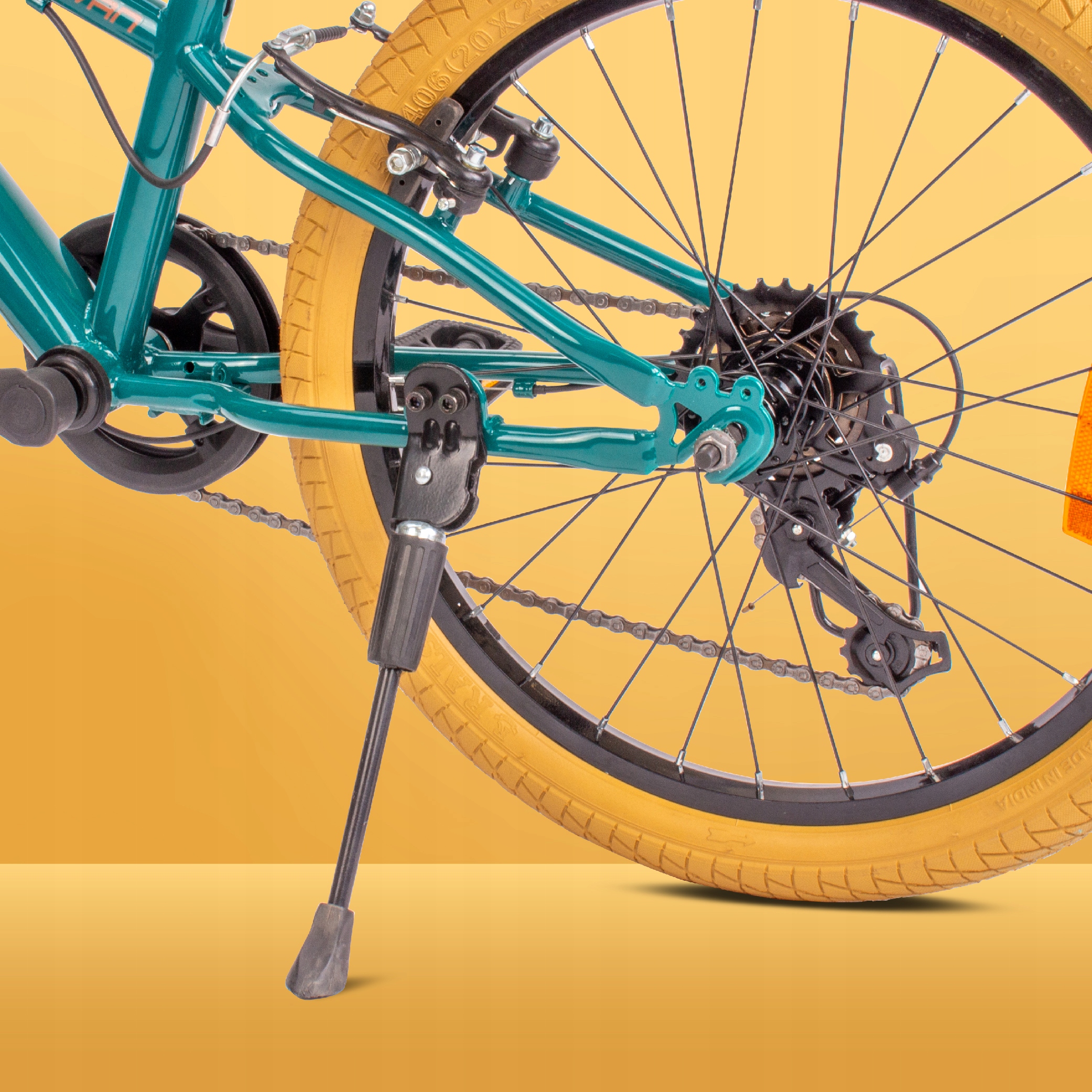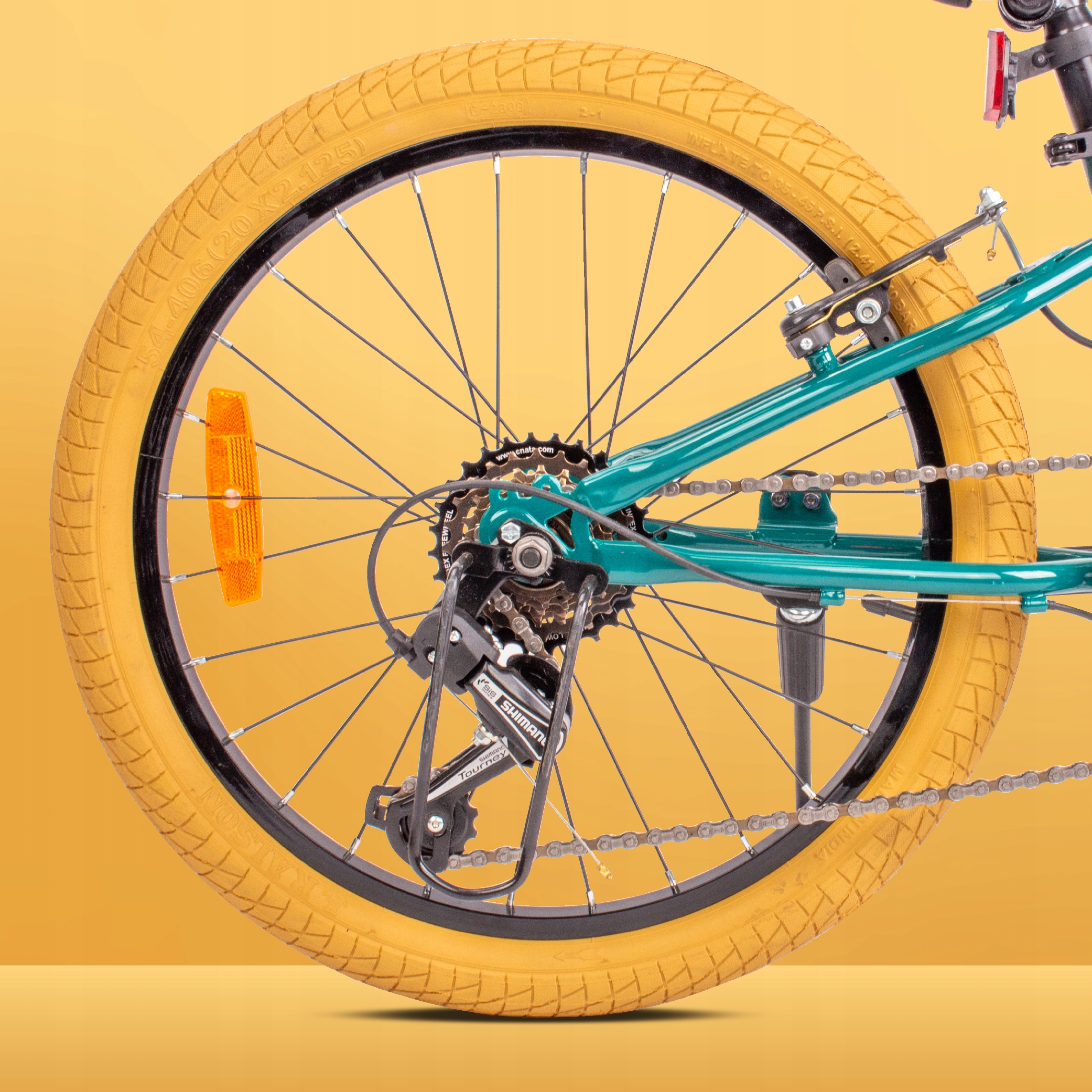 Велосипед оснащен 20-дюймовыми колесами, обеспечивающими оптимальные пропорции и устойчивость для детей. Меньший размер колес облегчает управление велосипедом детям, особенно тем, кто только учится кататься. Это придает детям большую уверенность в себе и позволяет быстрее развивать навыки езды на велосипеде.