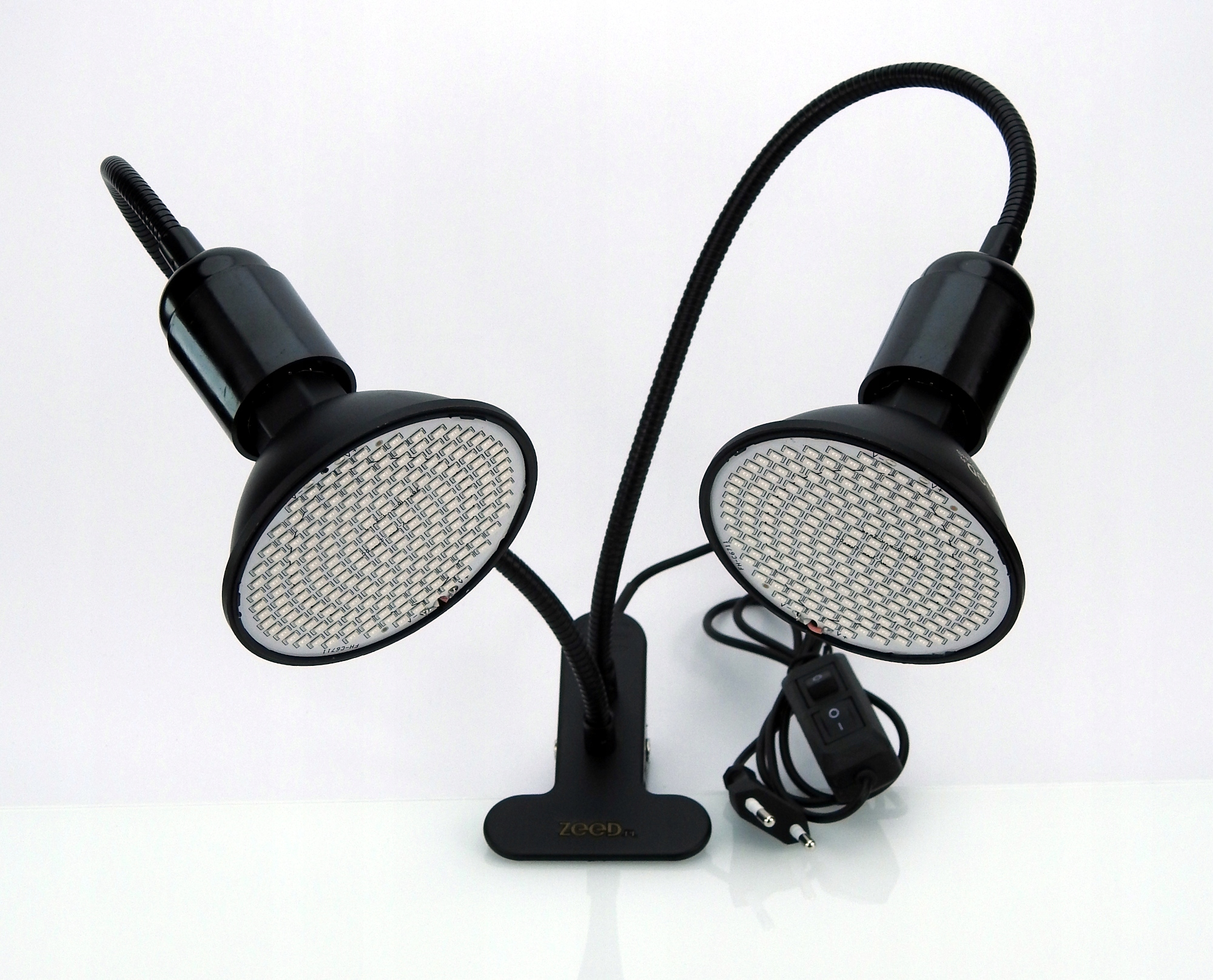 В комплект входят две светодиодные лампочки по 20Вт + двойная подставка.