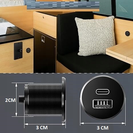 2X USB-РОЗЕТКА 24 ВТ ИЗ АЛЮМИНИЯ, ПОРТЫ ТИПА A И C, УСТАНОВКА ЗА СКРЫТО