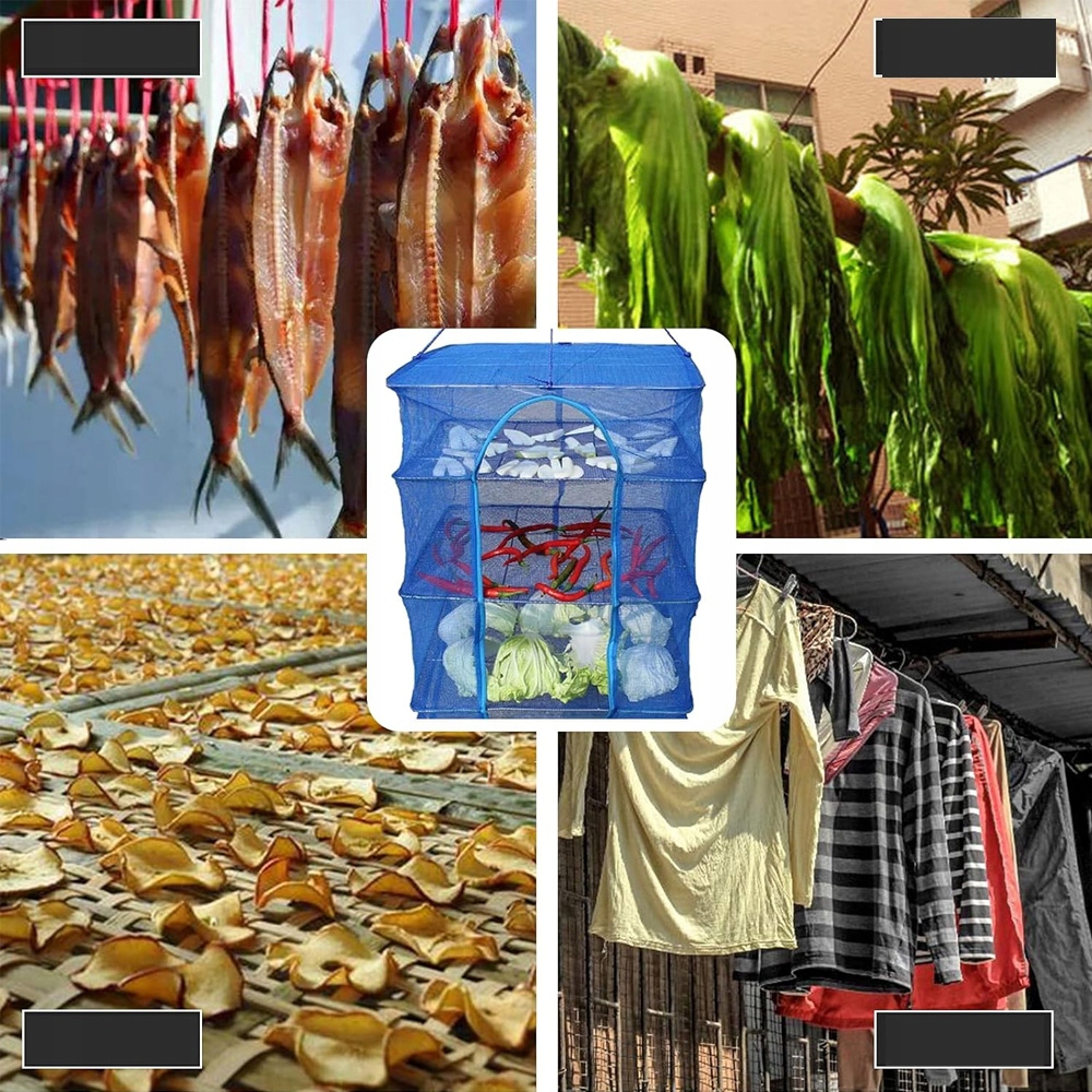 【Много места для хранения】 Эта подвесная рыба сушила может хранить бобы, овощи, сушеные фрукты, сушеные цветы, консервированные рыбы, колбасы, морепродукты и другие продукты питания. Каждый уровень может вместить разные предметы для удовлетворения ваших разнообразных потребностей.
