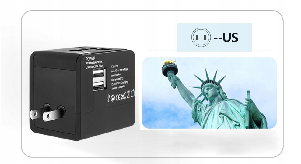 2 глобальных адаптера, универсальный USB-разъем для адаптера США, ЕС, Великобритании, Австралии