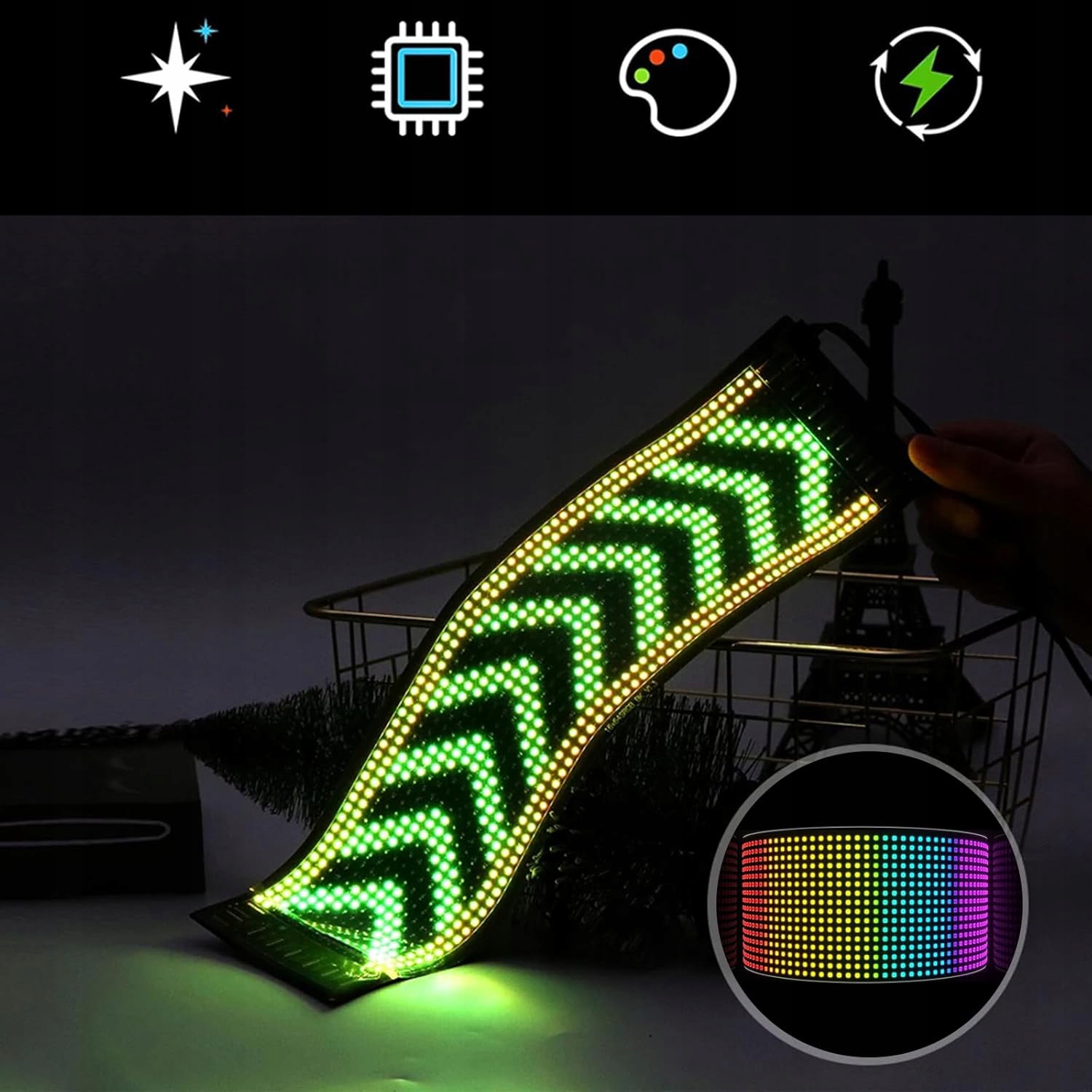❤️ Программируемый гибкий светодиодный дисплей: Программируемый гибкий светодиодный дисплей (приложение + пульт дистанционного управления) очень легкий и тонкий, его толщина составляет около 2 мм. Красочный мягкий экран с лампой-глазком для окна автомобиля можно сгибать, складывать и формовать, чтобы он подходил к различным поверхностям.