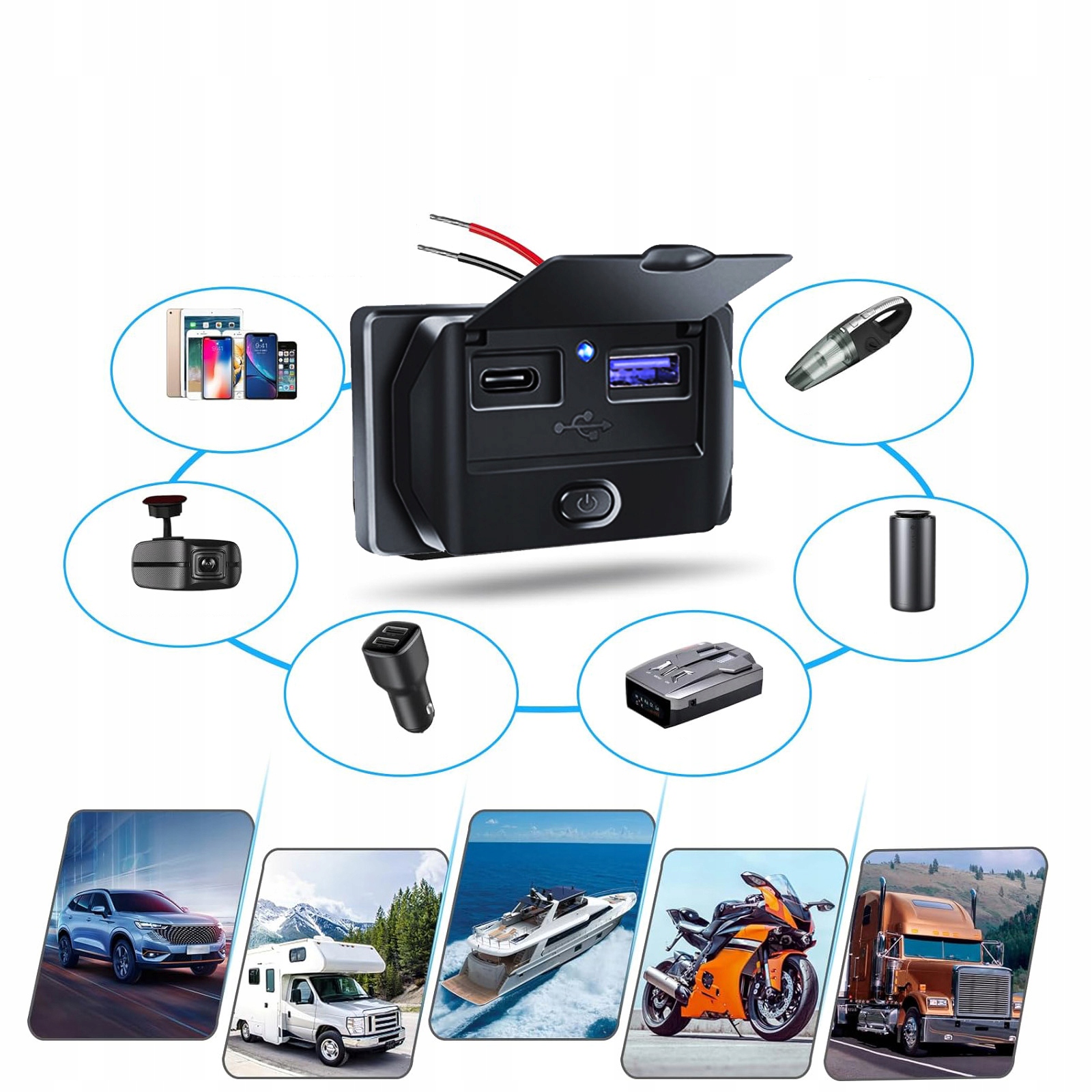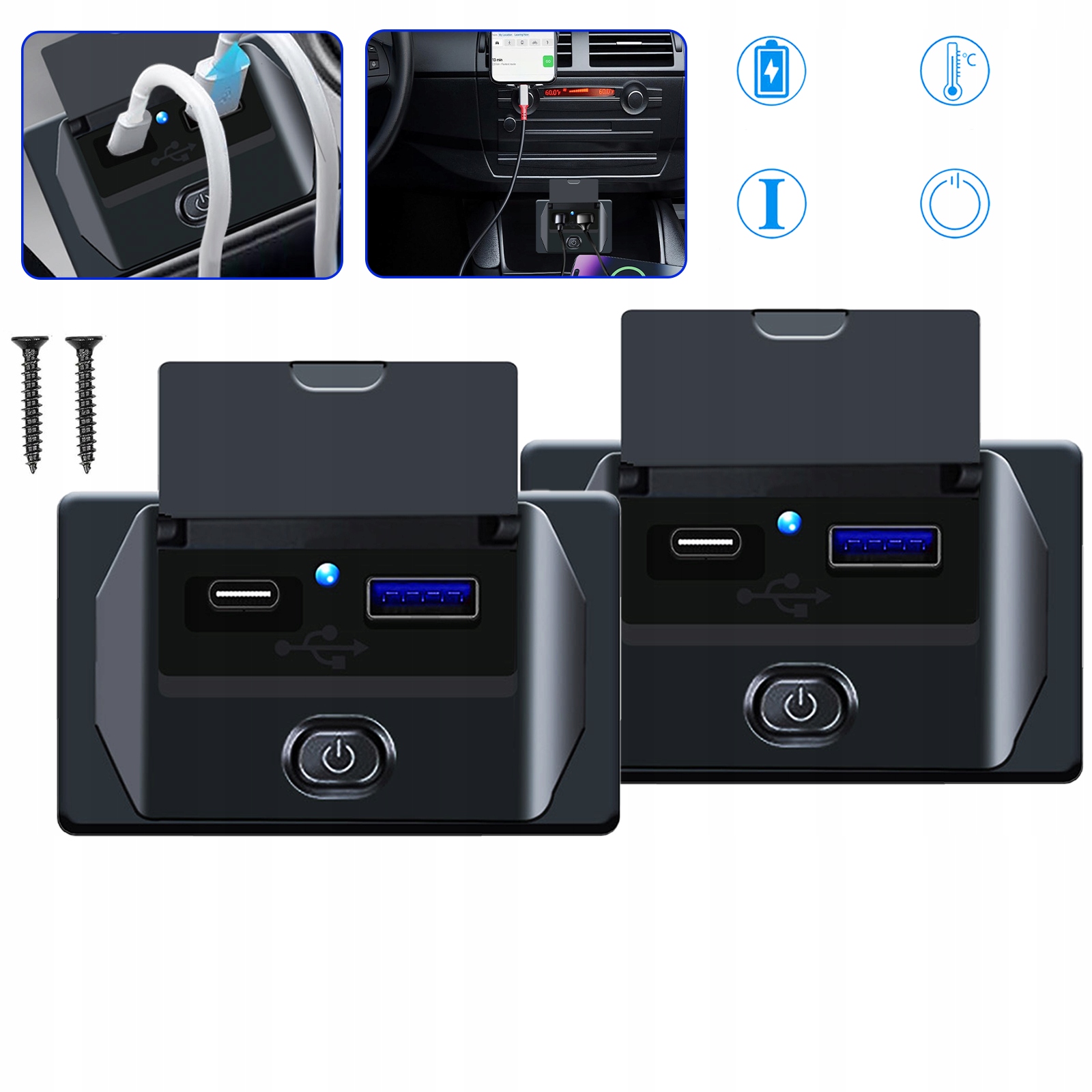2 АВТОМОБИЛЬНЫХ ЗАРЯДНЫХ УСТРОЙСТВА USB-C МОНТАЖНАЯ РОЗЕТКА PD 30 Вт+QC 18 Вт 12 В/24 В