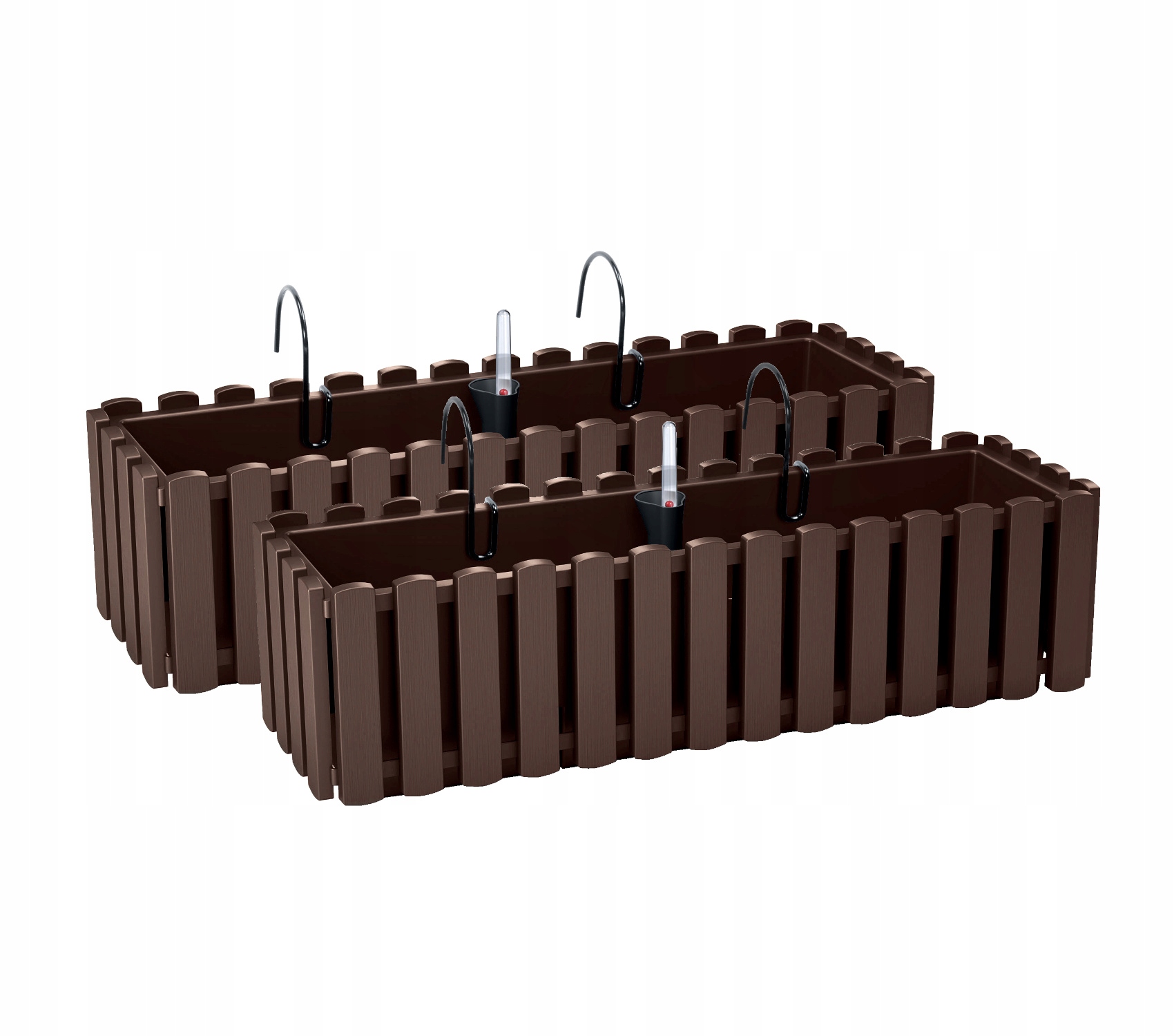 Горшки оснащены крепежными крючками и системой полива.