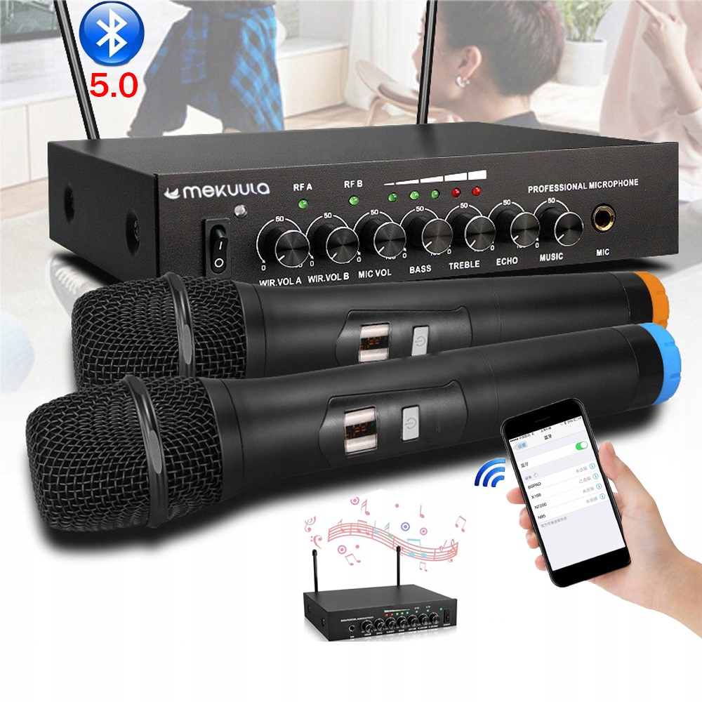 ?Подходит для многих применений? Беспроводной микрофон с высоким эхотоном и технологией Bluetooth, беспроводная система с двумя микрофонами УВЧ для караоке, диджеев, пения, церкви, свадьбы, динамиков, усилителей, систем громкой связи