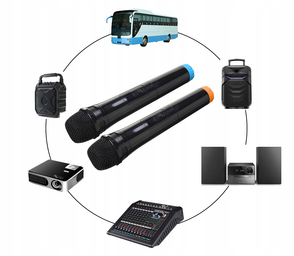 Идеальный выбор для караоке-вечеринки, диджея, свадебного ведущего, церкви, деловых встреч, занятий в классе, выступлений на открытом воздухе или на сцене. Технология УВЧ позволяет использовать несколько комплектов вместе, не беспокоясь о помехах друг другу.
