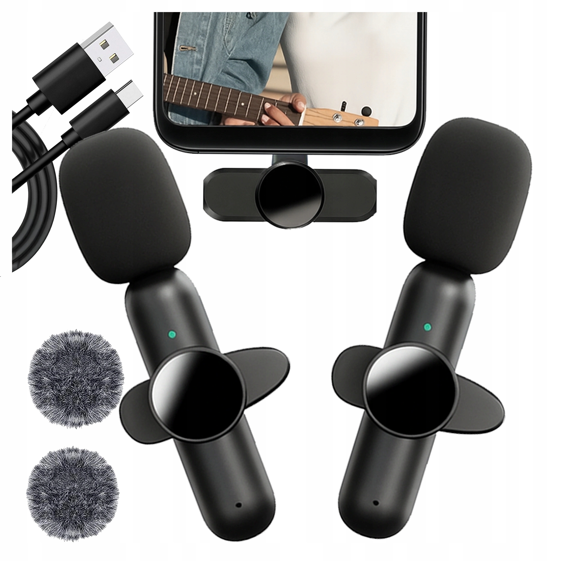 ▶ ️ 2x Tie-Tie-подобный беспроводной микрофон с USB-C Fur-C Black Set h2>