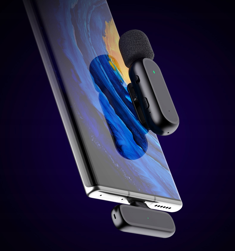 2 БЕСПРОВОДНЫХ СВЯЗАННЫХ МИКРОФОНА USB C ANDROID IPHONE IOS POWERBANK VLOG