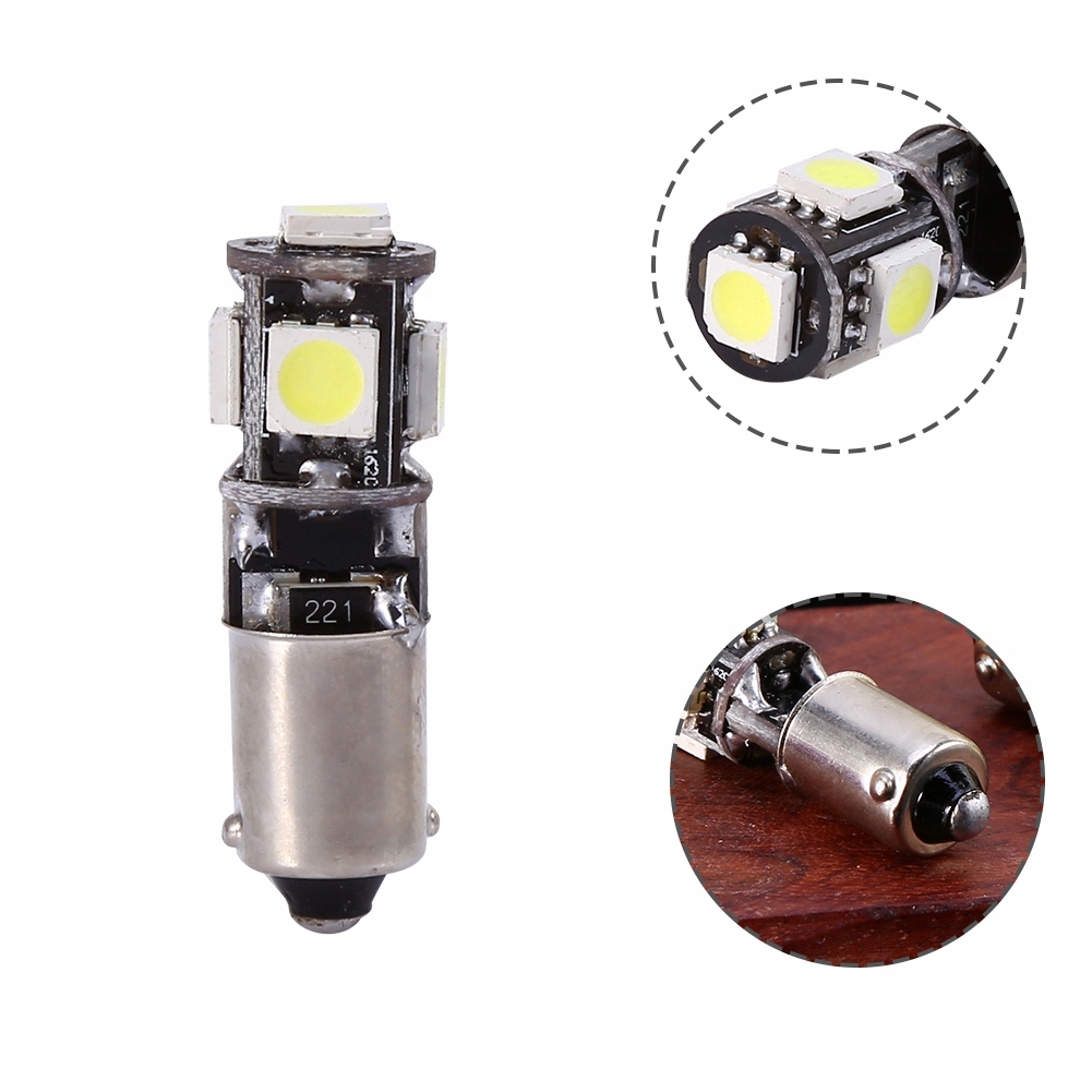 . 2x белые лампочки H6W BA9S LED 5 SMD CANBUS FREE YI