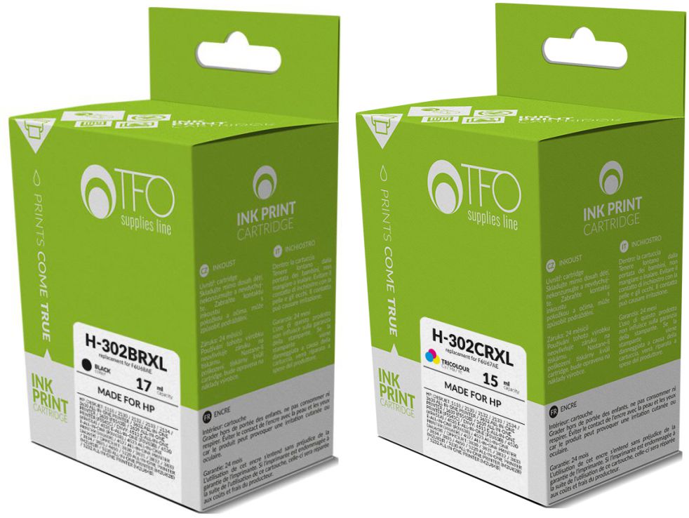 TFO HP 302 XL SET Замена для черного F6U68A + красочный F6U67A h1>