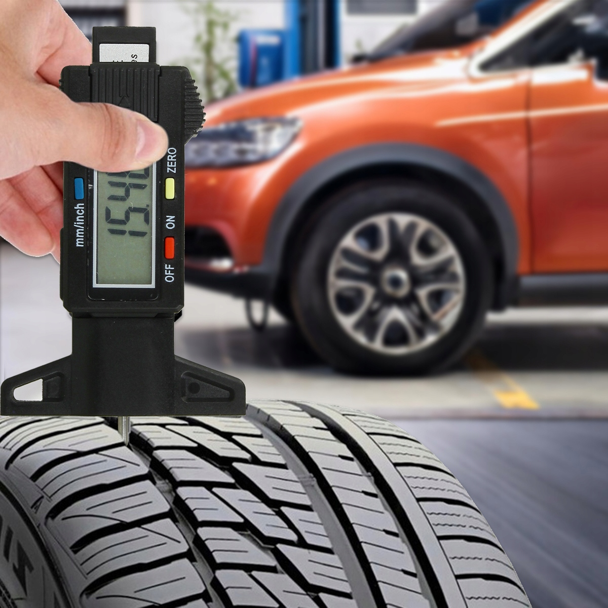ЦИФРОВОЙ ТОРМОЗНОЙ ИЗМЕРИТЕЛЬ ГЛУБИНЫ ПРОТЕКТОРА ШИН с дисплеем + АККУМУЛЯТОРНАЯ БАТАРЕЯ