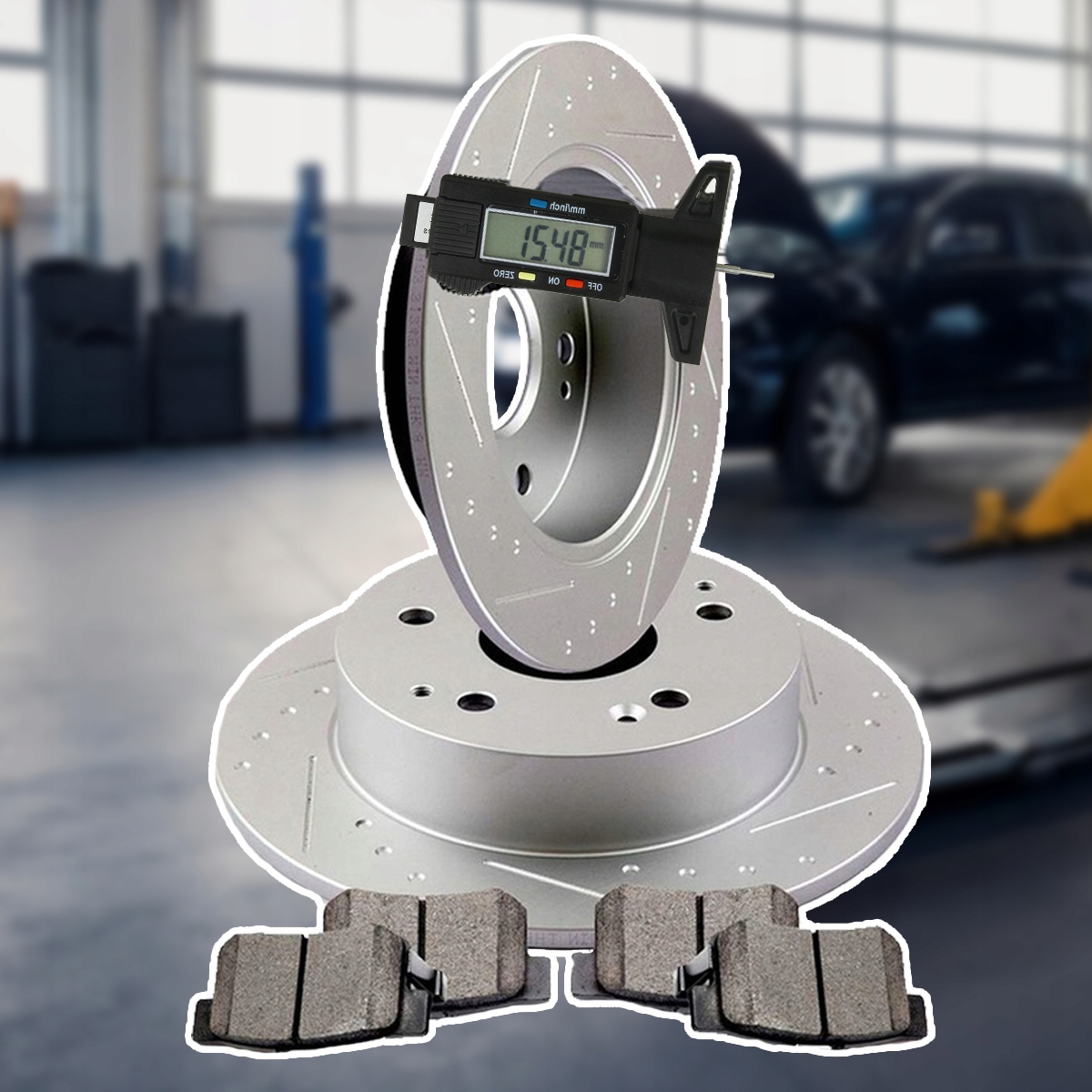 Измеритель имеет специальный крючок на заднем измерителе, который позволяет точно измерить толщину тормозных дисков. Каждый производитель тормозных дисков указывает минимальную толщину используемых тормозных дисков; когда диск достигнет этого значения, его необходимо заменить.