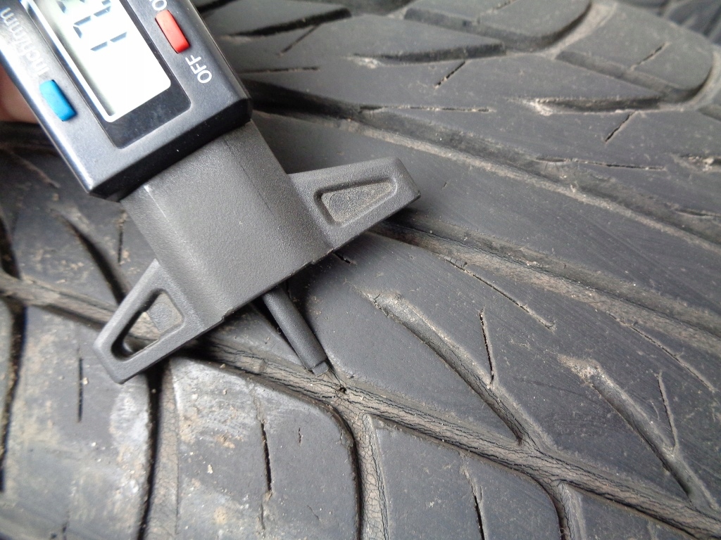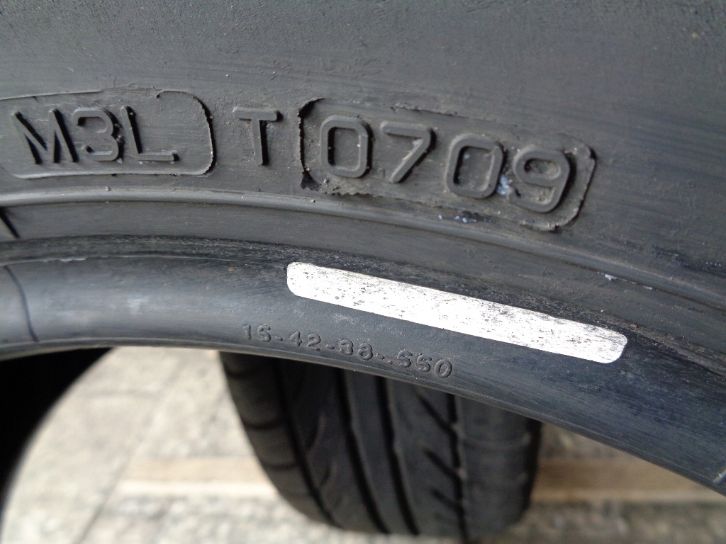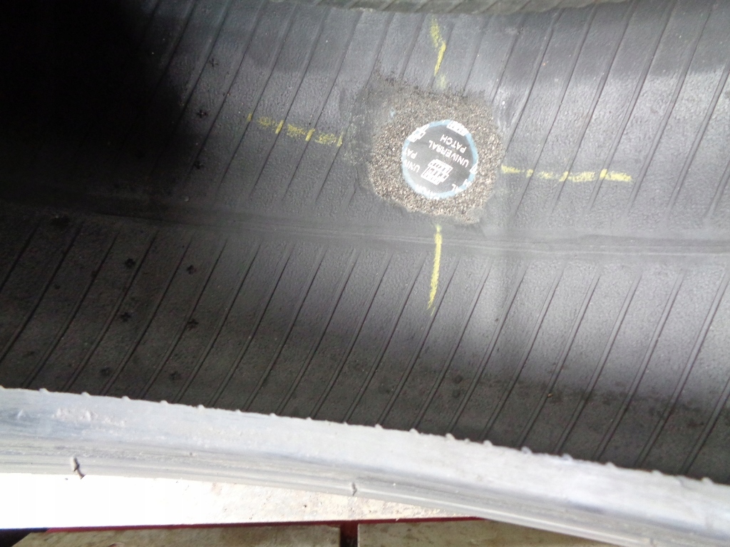 Одна из шин отремонтирована из-за гвоздя в середине протектора.