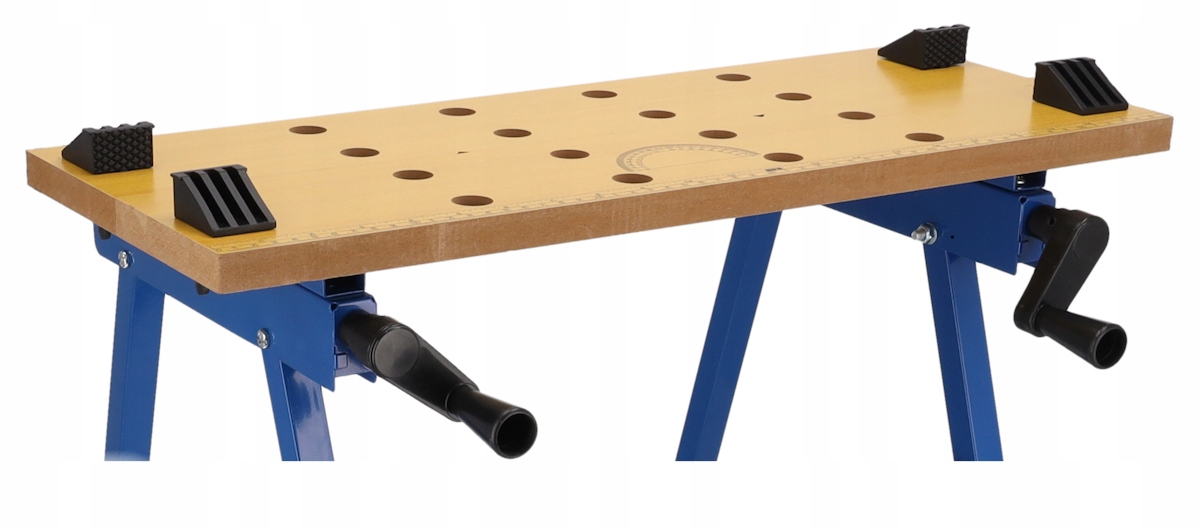 Стол легкий, удобный и легко переносится. После окончания работы верстак можно быстро и легко сложить, существенно уменьшив его габариты – это облегчает хранение и транспортировку и обеспечивает свободу передвижения по цеху.