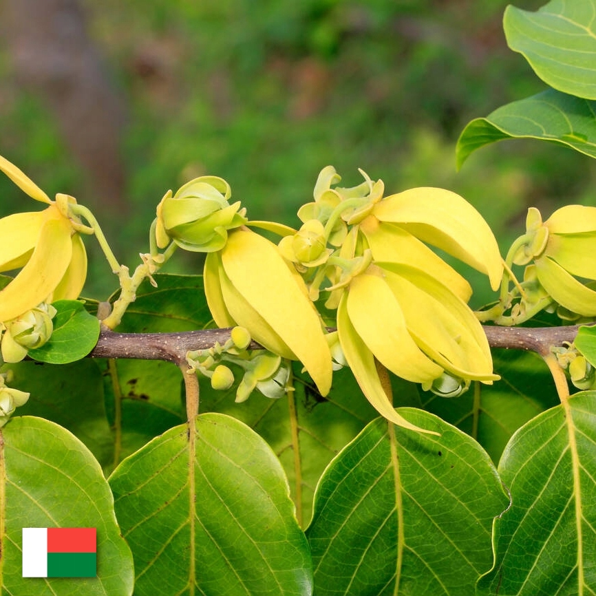 Эфирное масло цветка иланг-иланга получается из высокого экзотического дерева Cananga odorata, которое растет в тропических регионах. Дерево может достигать 20 метров в высоту и характеризуется густой блестящей листвой, наличием желтых ароматных цветов необычной формы и сладким характерным ароматом. Комбинация тонкая и имеет сходство с цветочными и фруктовыми нотами аромата. Масло иланг-иланга обладает уникальным сложным ароматом, оказывающим успокаивающее и расслабляющее действие. Его получают в процессе дистилляции собранных вручную цветов на рассвете, когда растение отличается величайшим эфирным богатством.