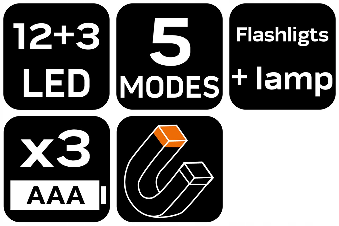 ✔️Дополнительное освещение: 3 дополнительных светодиода, действующих как фонарик – полезно для освещения ближайшего окружения, например, при мелком ремонте в темноте.