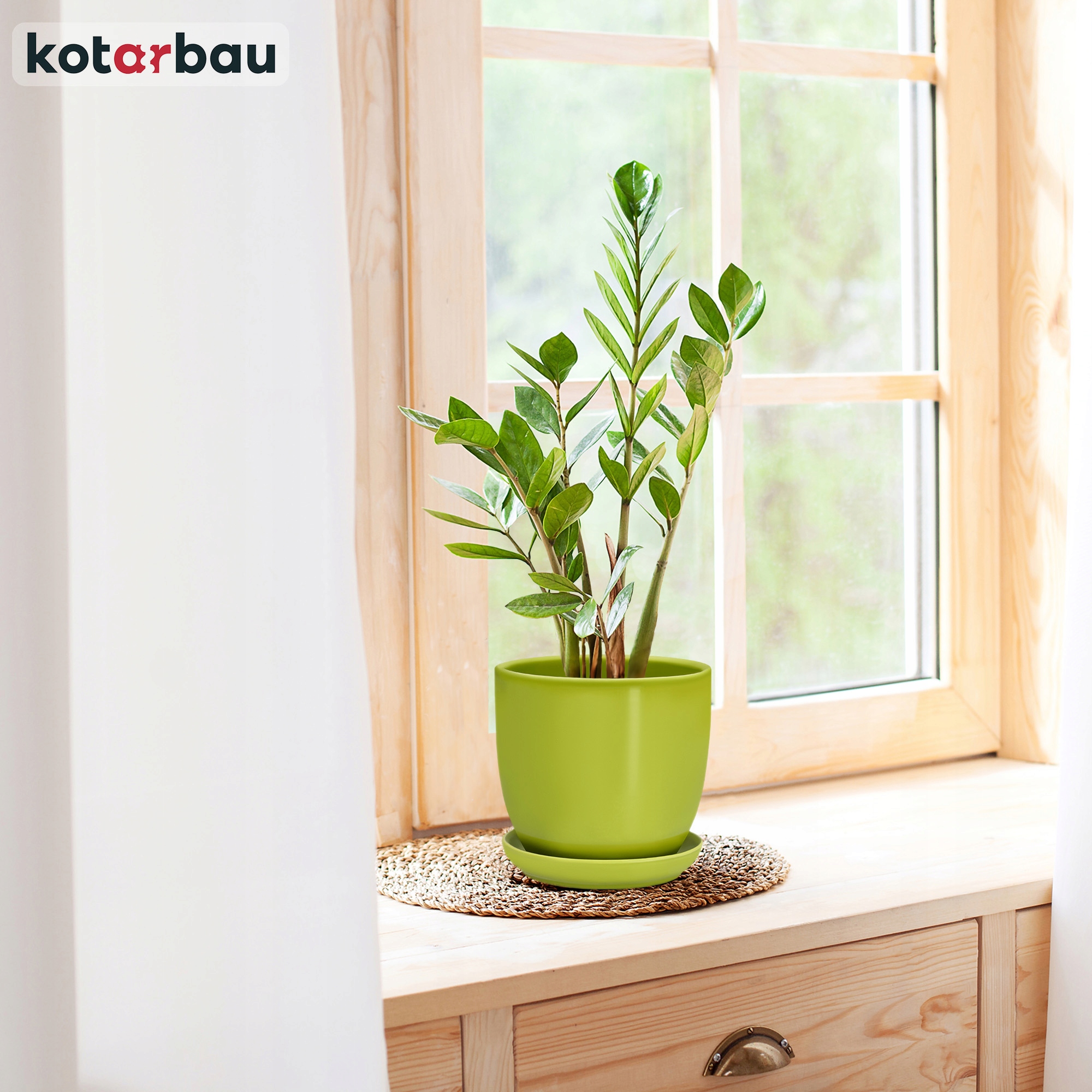 - Керамический горшок с основанием идеально подходит для типичных домашних и садовых растений.