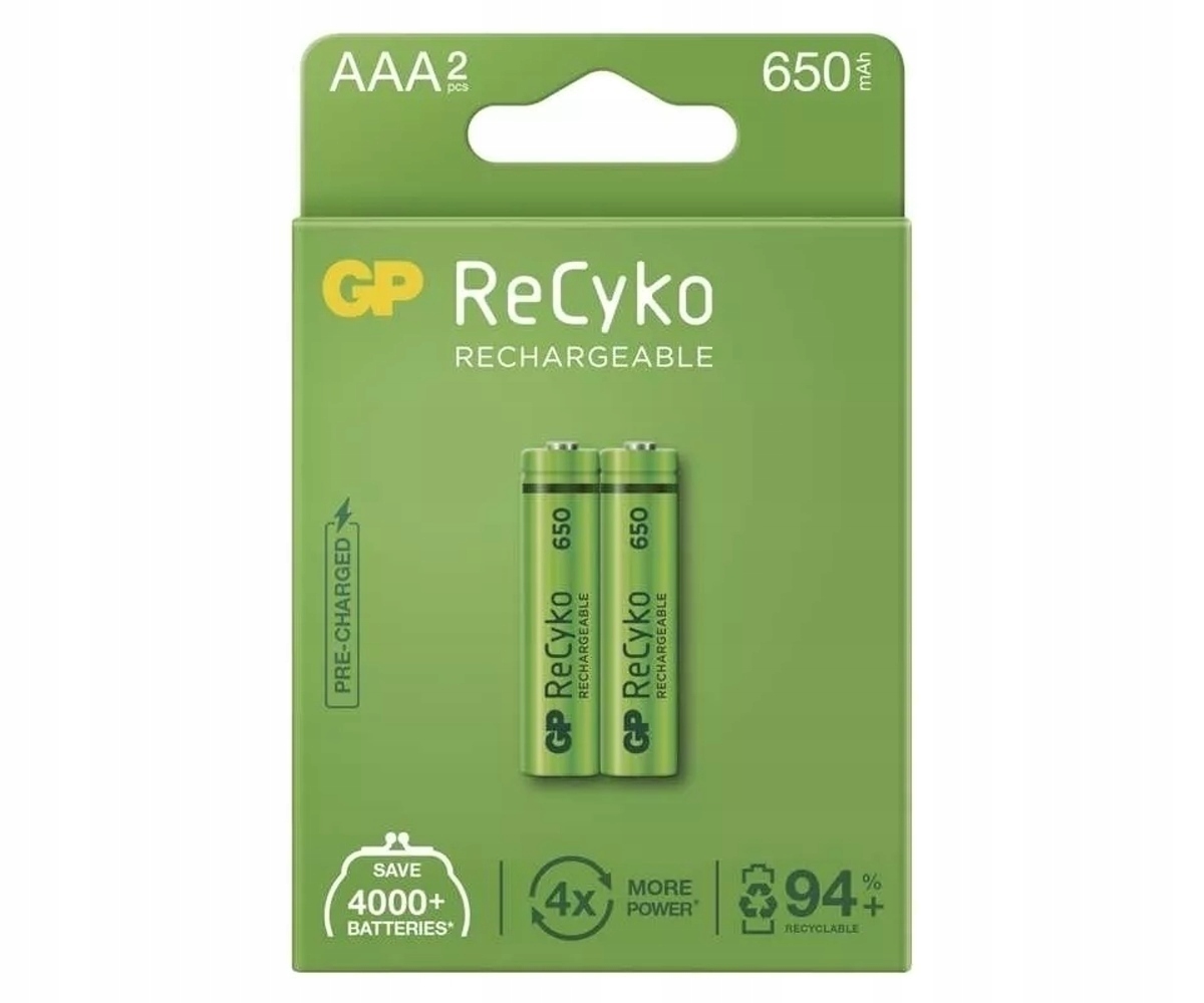 2x GP ReCyko + акумулятор Ni-MH 650mAh 1,2V AAA