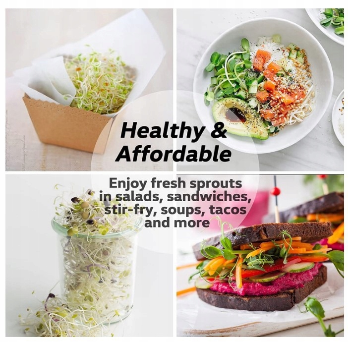 ✔ Все элементы набора были сделаны из безопасных материалов, которые не реагируют с пищей или веществом. Благодаря этому вы можете быть уверены, что ваши ростки будут здоровыми и безопасными для еды.
