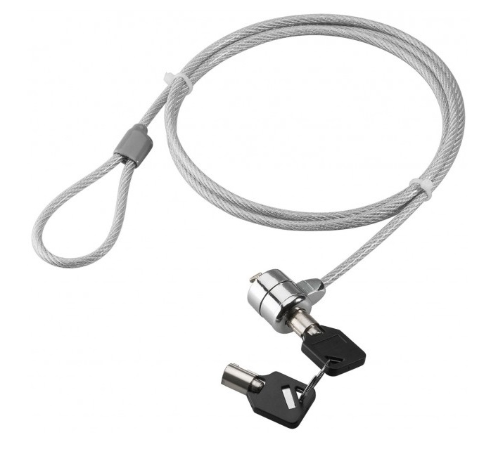 - Прикрепляется к защитному слоту ноутбука и любому неподвижному элементу;