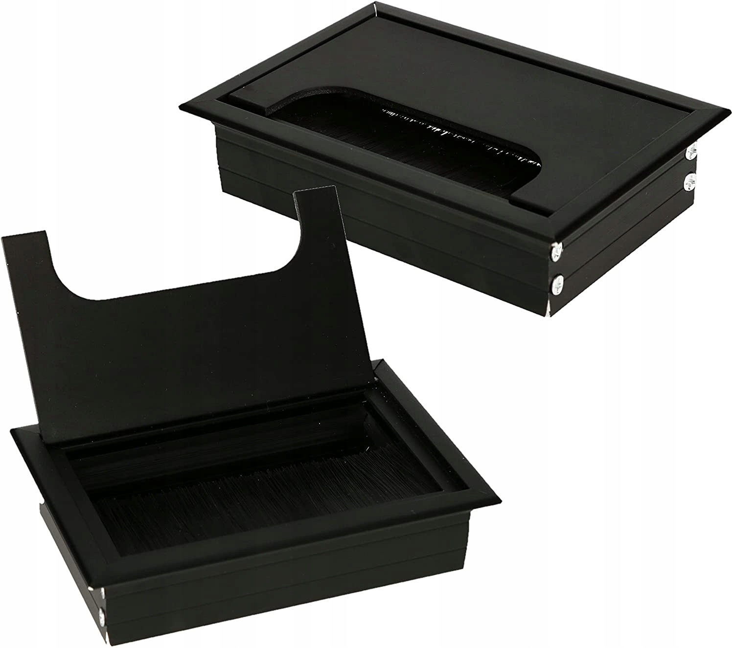 - Нейлоновая щетка, расположенная внутри входного отверстия, защищает кабели, предотвращая истирание и порезы острыми краями мебели.