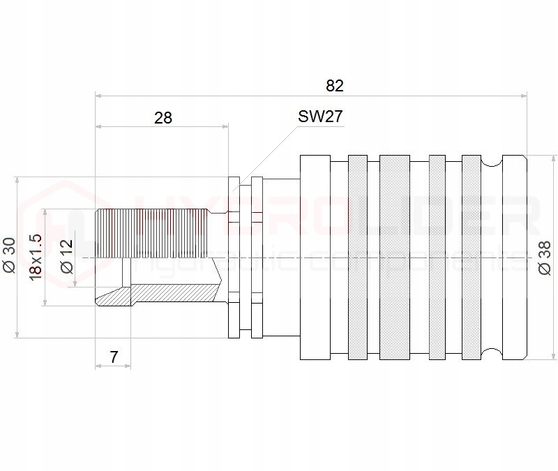 - Боковая резьба троса: внешняя метрическая 18х1,5