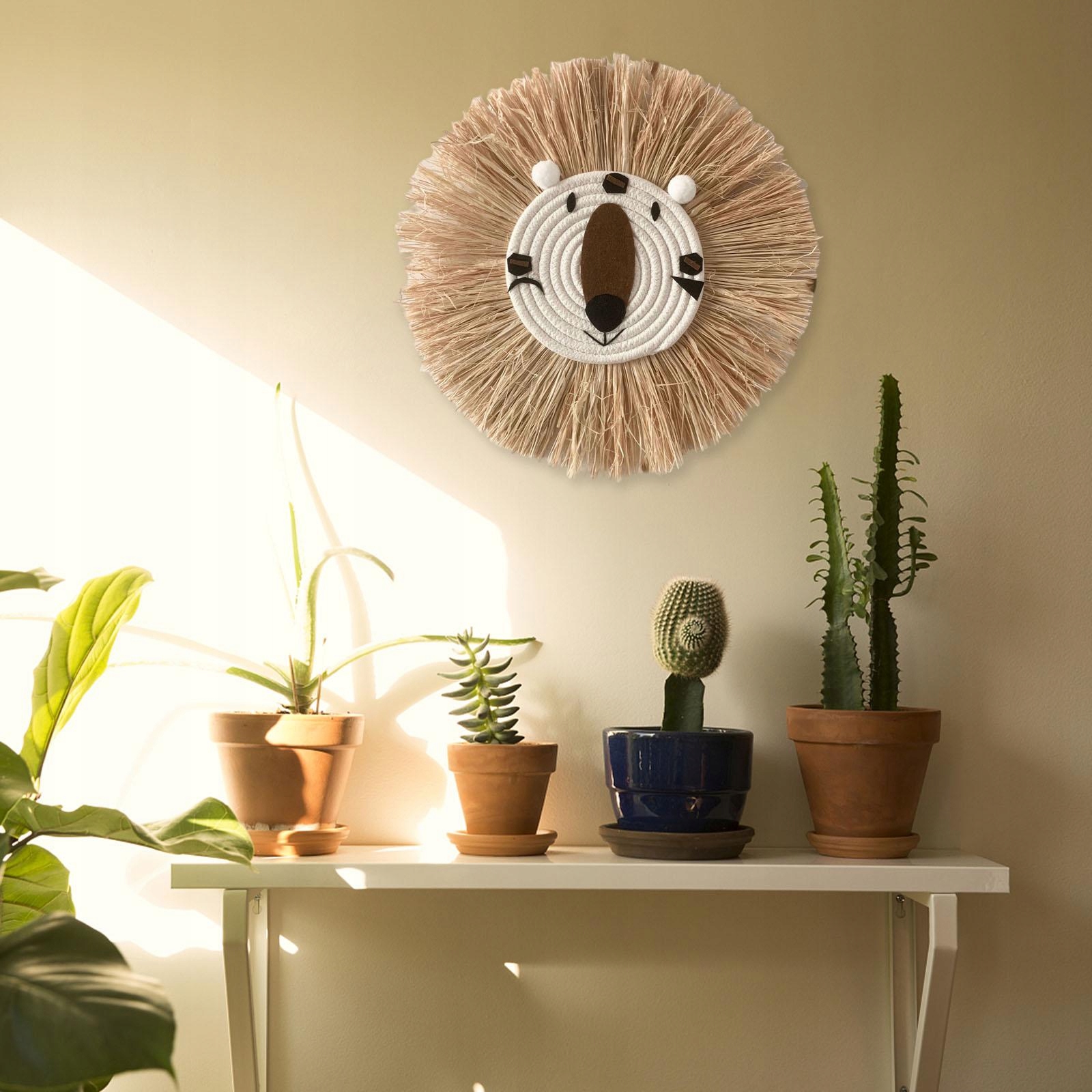 2x круглий солом'яний настінний декор гобелен з бавовняної нитки ручної роботи Лев