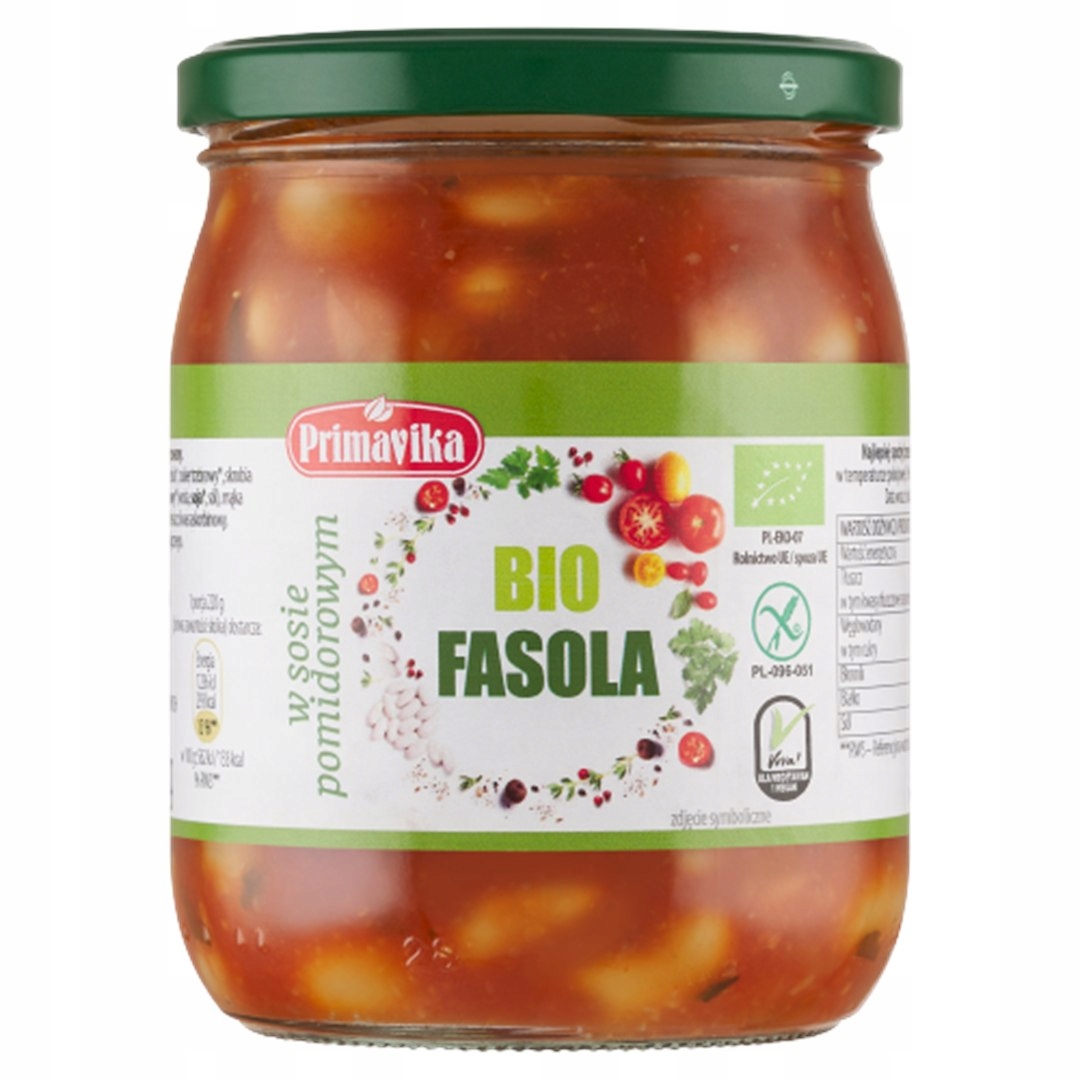 2x ФАСОЛЬ В ТОМАТНОМ СОУСЕ БЕЗ ГЛЮТЕНА ОРГАНИЧЕСКАЯ 440 г - ПРИМАВИКА